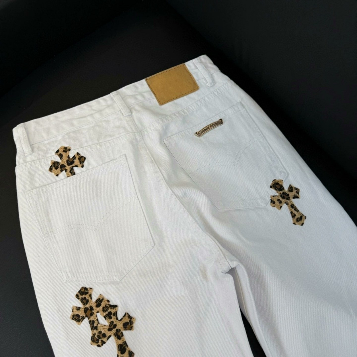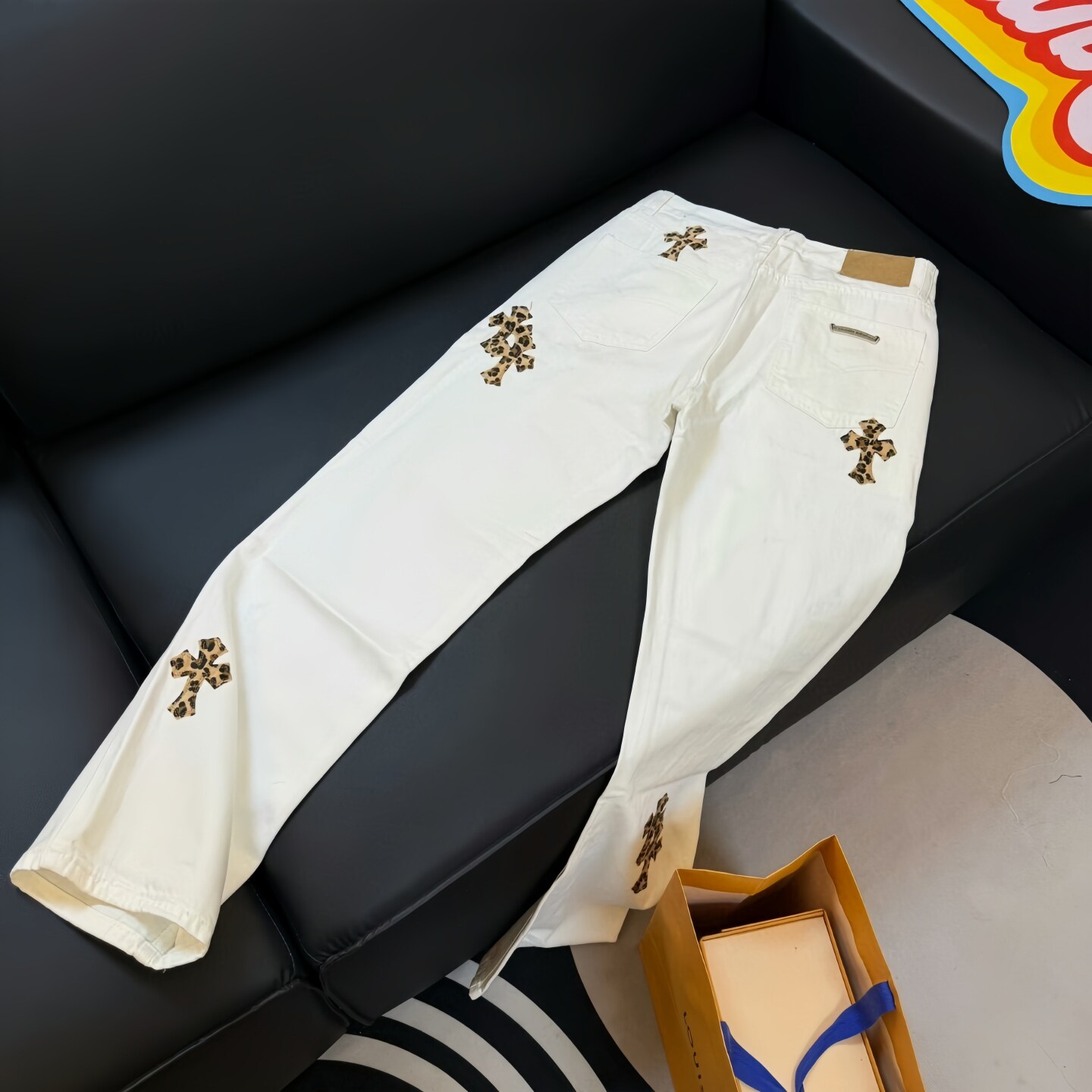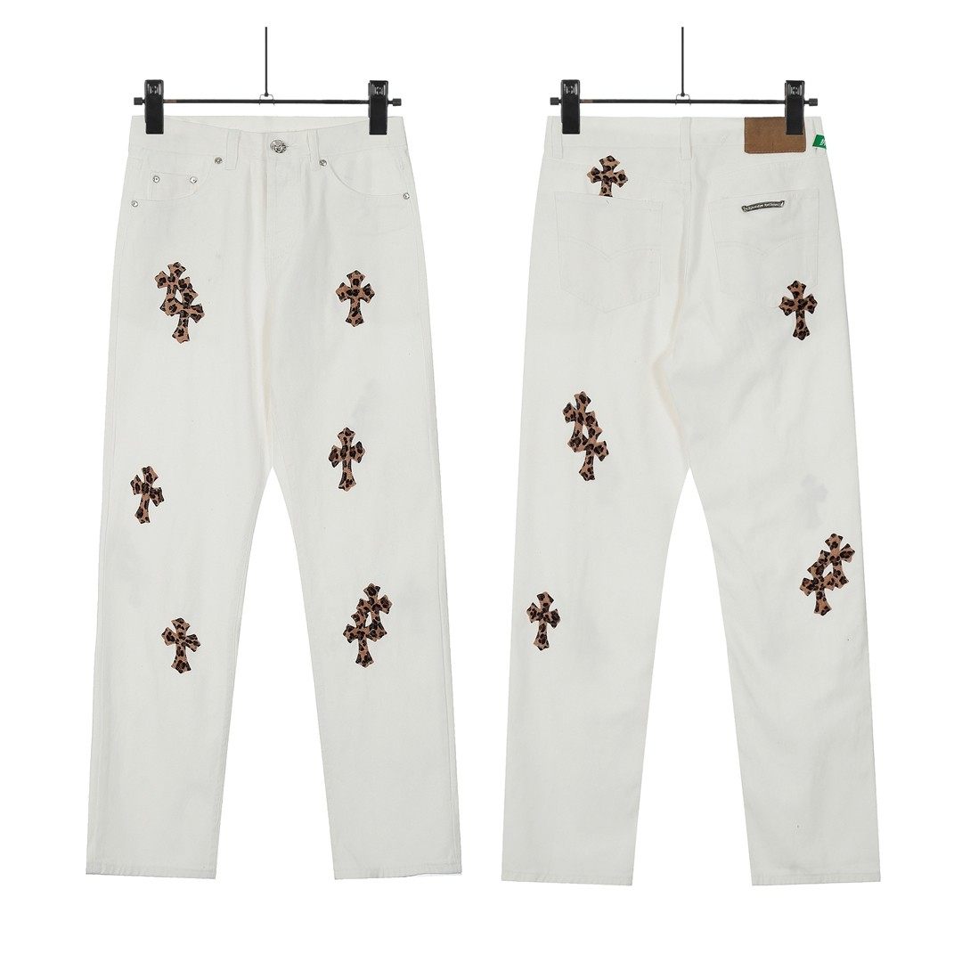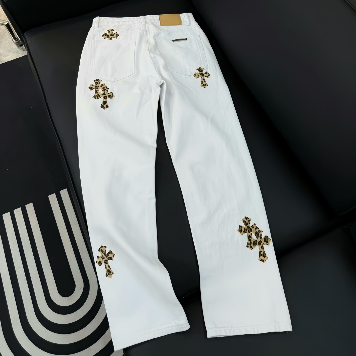 克罗十字架男女宽松直筒长裤 高街豹纹贴皮刺绣美式 新款 潮牌牛仔裤