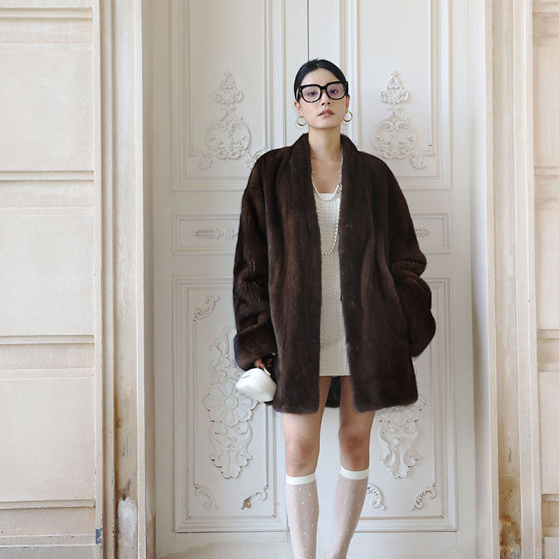 貂皮大衣女 进口紫标级天鹅绒V领水貂外套复古时尚 茉萱 巴塞罗那