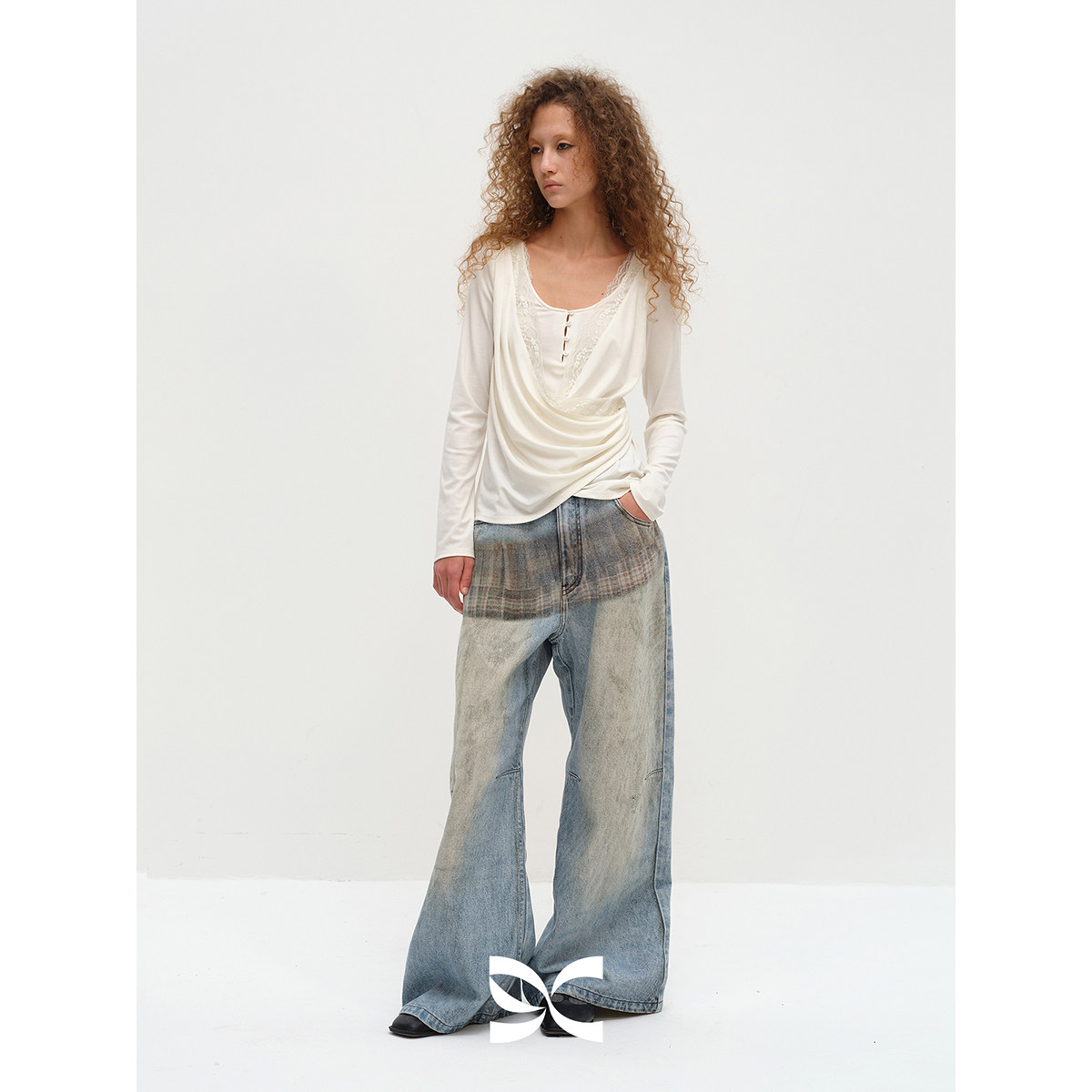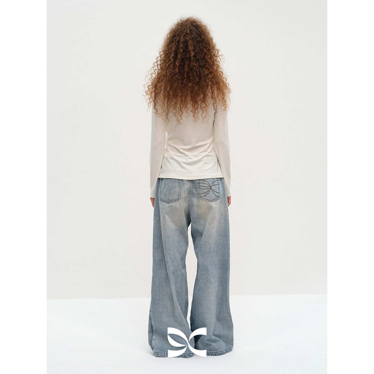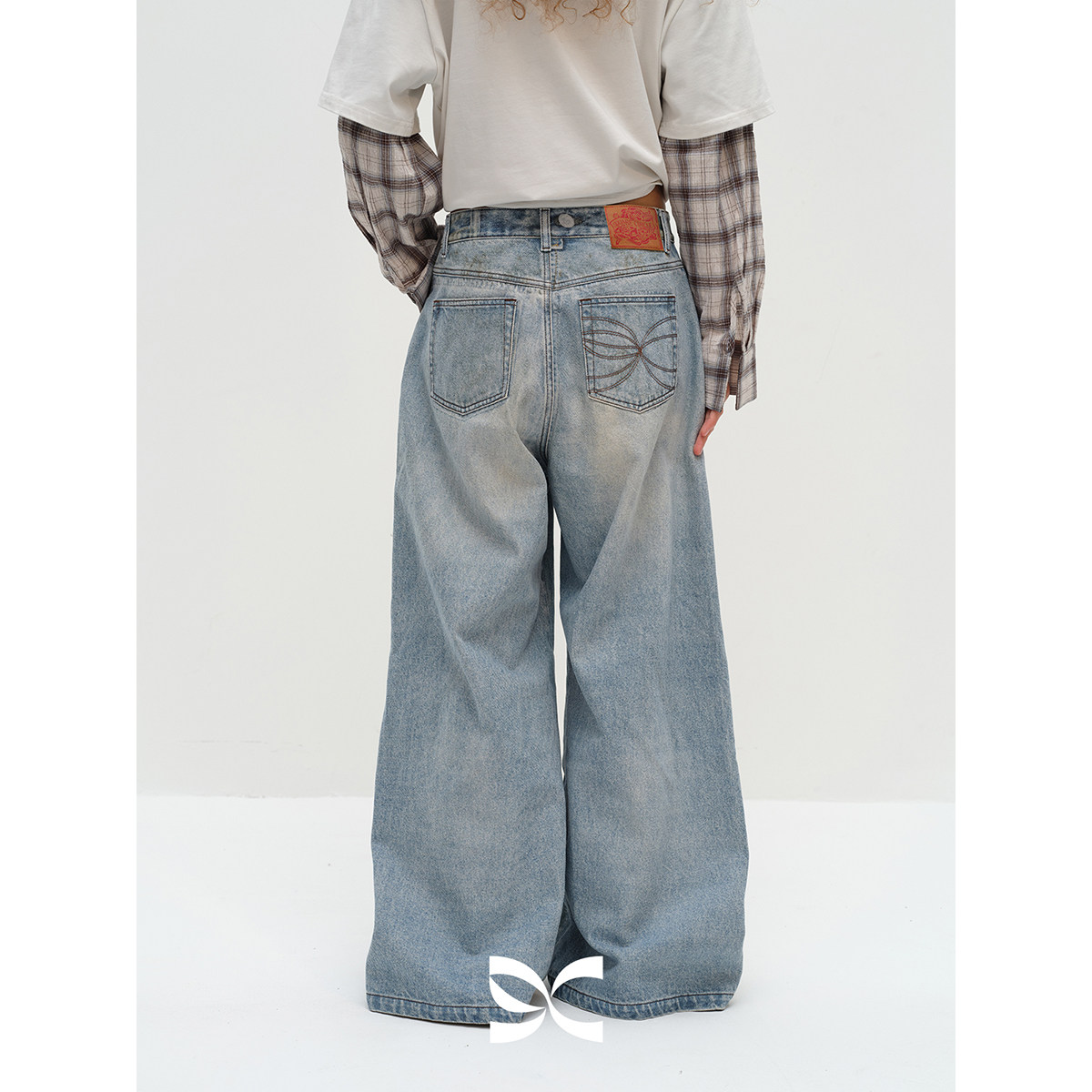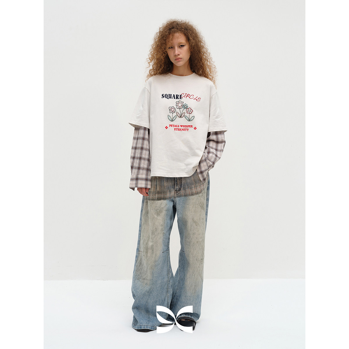长裤 方圆3D立体裙摆印花街头复古做旧宽松牛仔裤 CIRCLE SQUARE