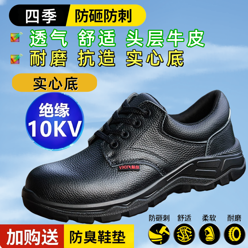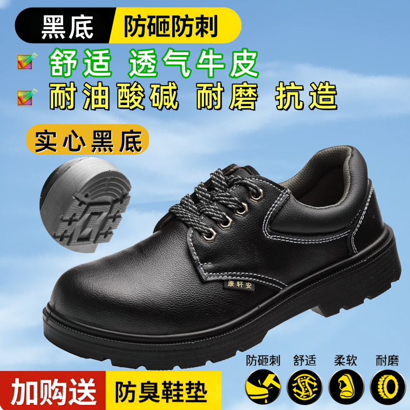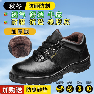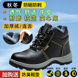 牛皮真皮耐油酸碱实心底耐磨橡胶冬棉鞋 工作防砸安全 加绒男劳保鞋