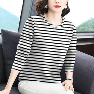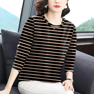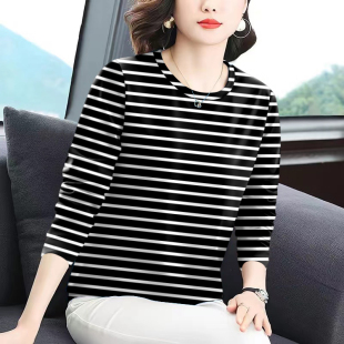宽松遮肚显瘦T恤女上衣潮 上衣女减龄条纹长袖 清仓捡漏 秋冬新款