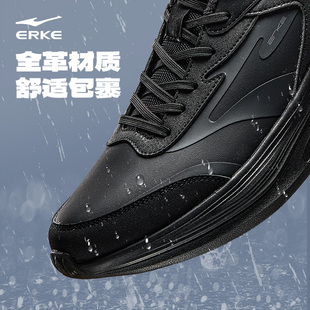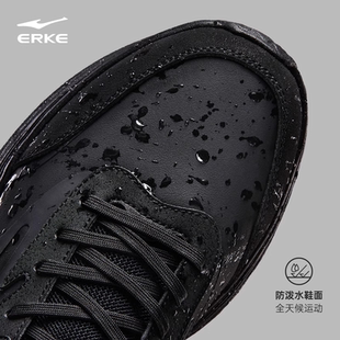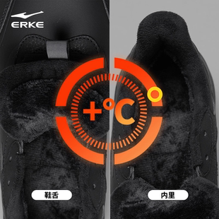 防泼水皮面黑色公务通勤加绒休闲鞋 鸿星尔克男鞋 运动鞋 新款 秋冬季