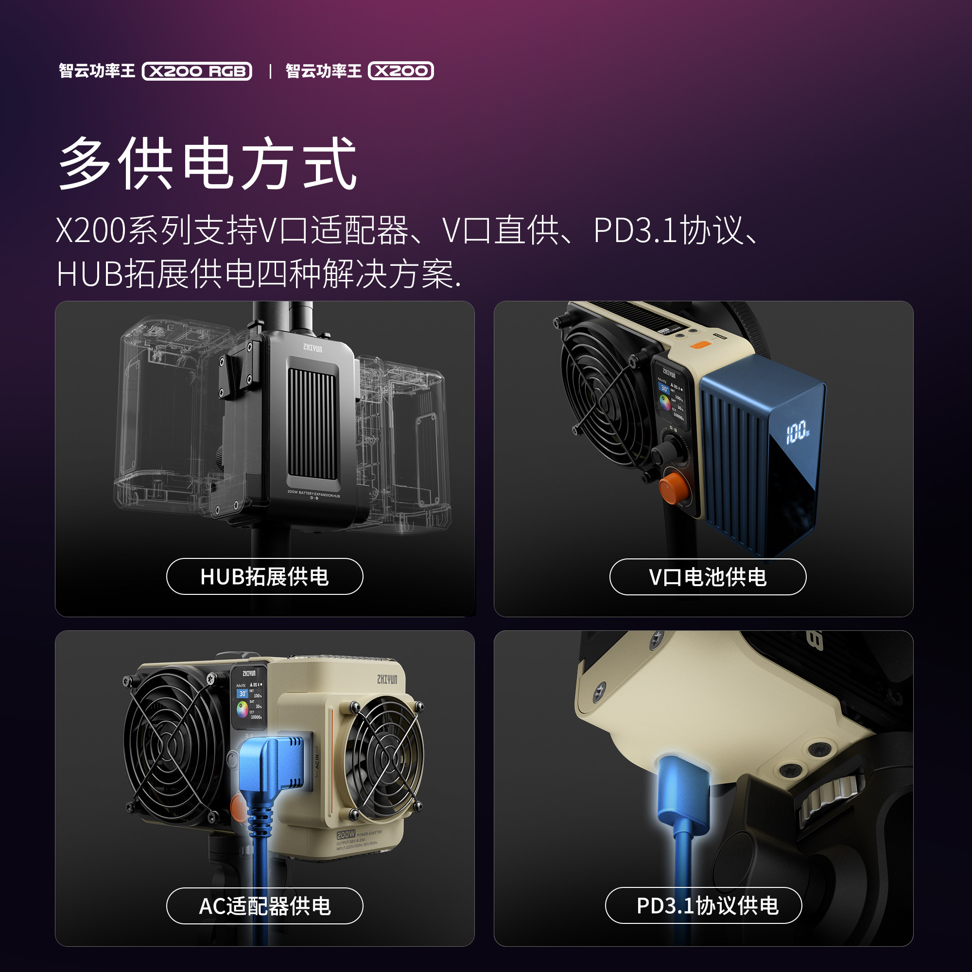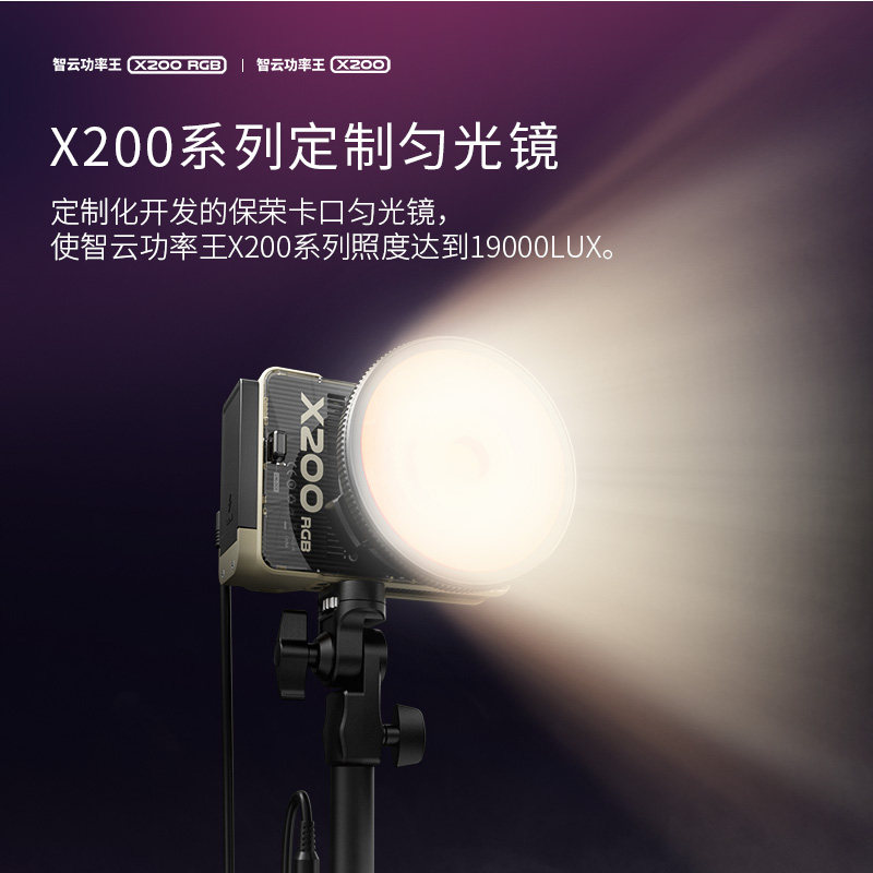 智云功率王X200RGB直播补光灯拍摄专用直播摄影灯便携式 户外室内夜景人像发丝拍照柔光补光灯大功率常亮灯
