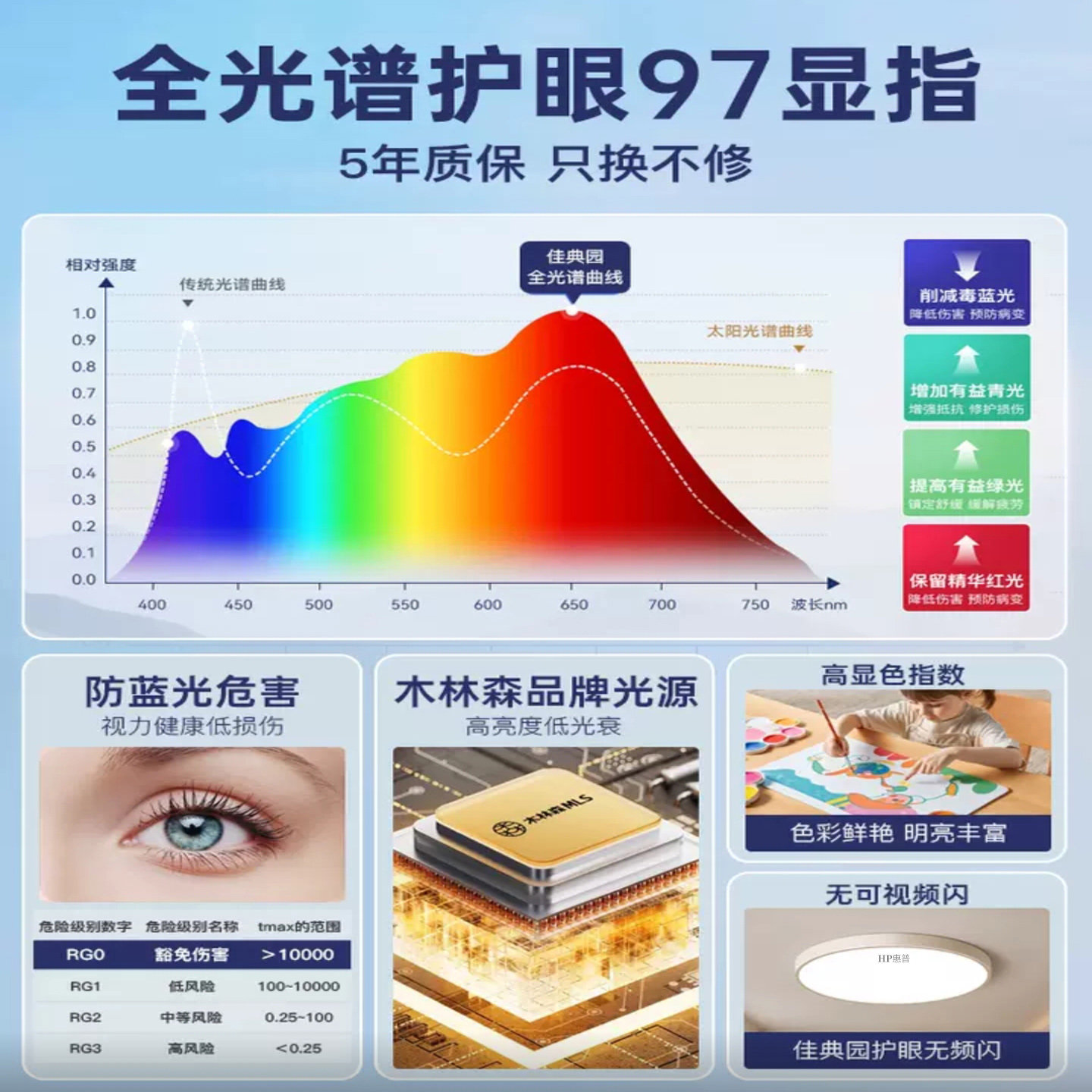 led吸顶灯全光谱客厅灯具简约现代护眼中山阳台房间餐厅卧室灯