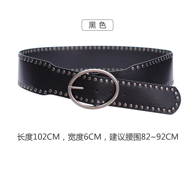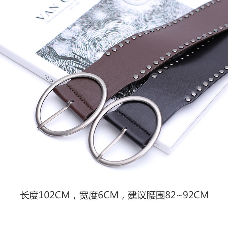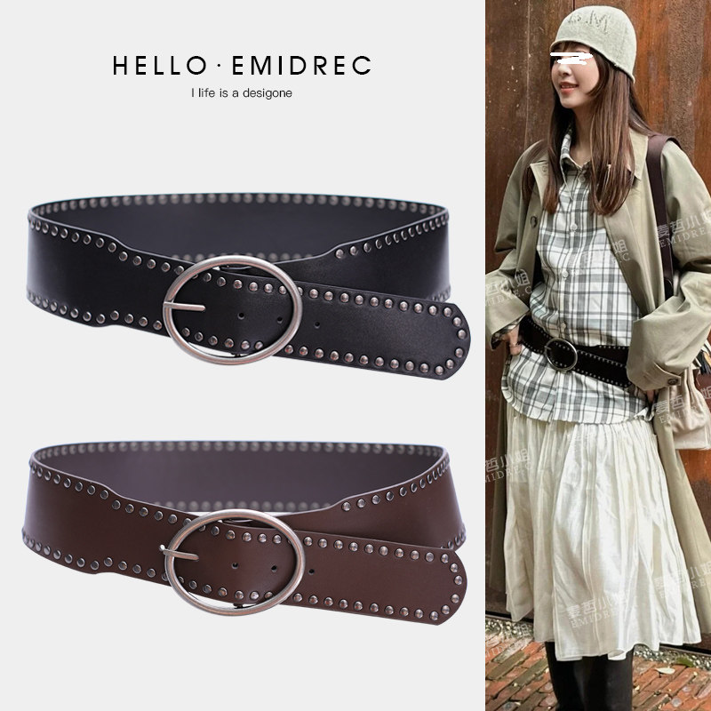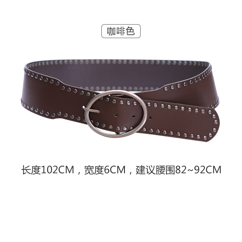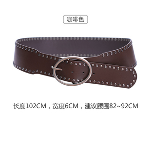 亚文化vintage复古铆钉装 饰腰带配饰女宽皮带棕色设计感配牛仔裤