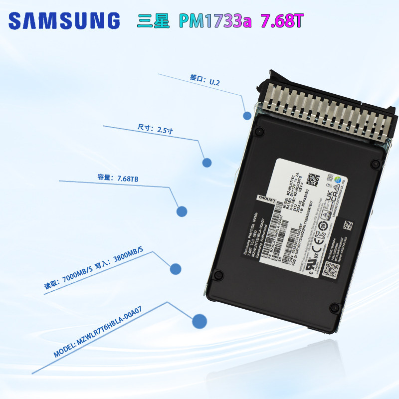 三星 MZWLR7T6HBLA PM1733a U.2接口 00A07 7.68T固态硬盘 联想版