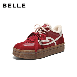 休闲板鞋 新增高鞋 A6N4DAM5预 百丽板栗厚底红色德训鞋 张凌赫同款