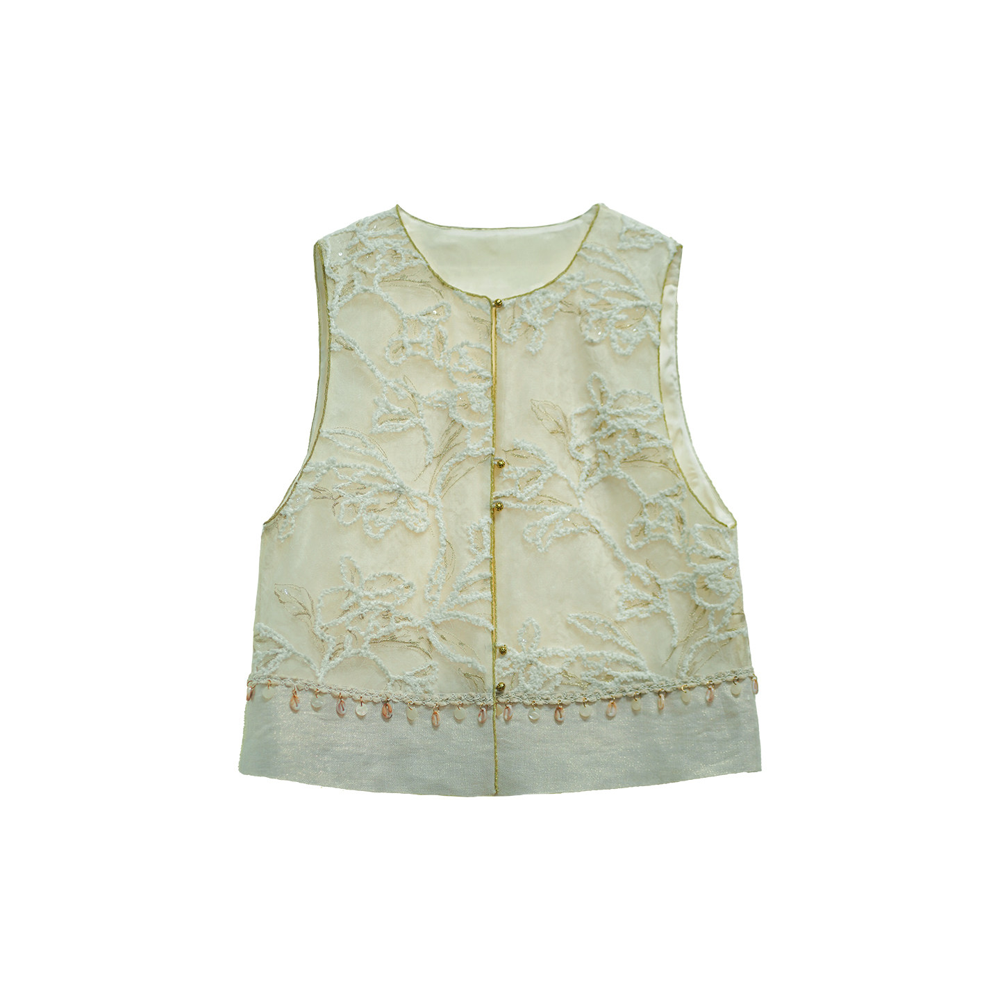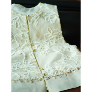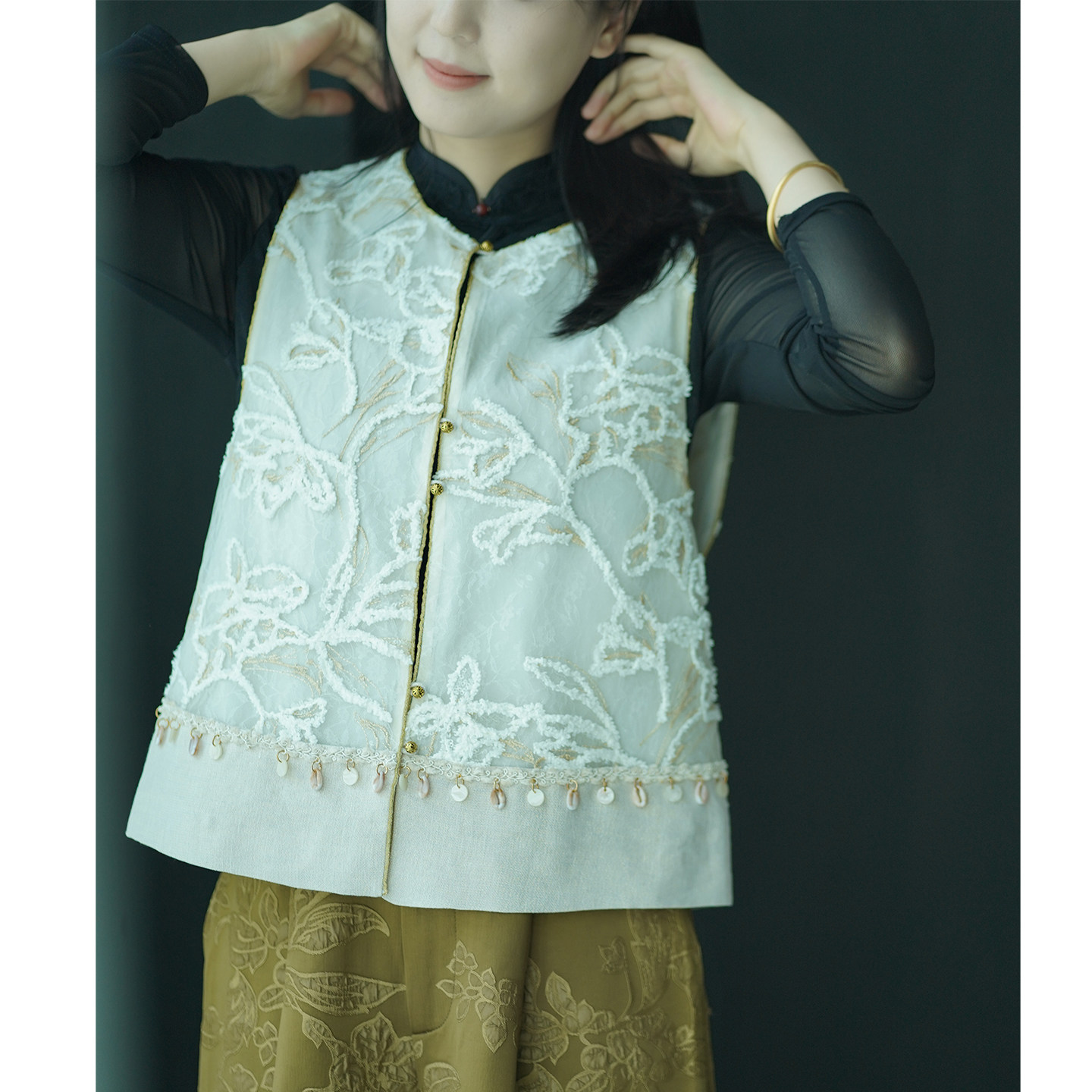 艾绘馆新中式 休闲国风盘扣坎肩 复古欧根纱立体植绒马甲背心女秋季