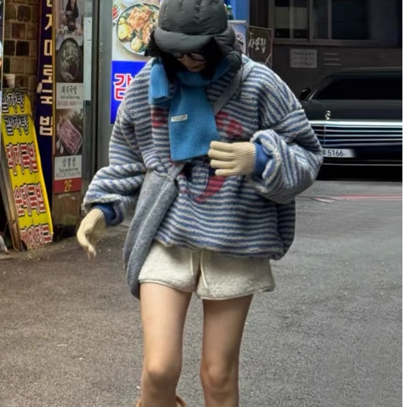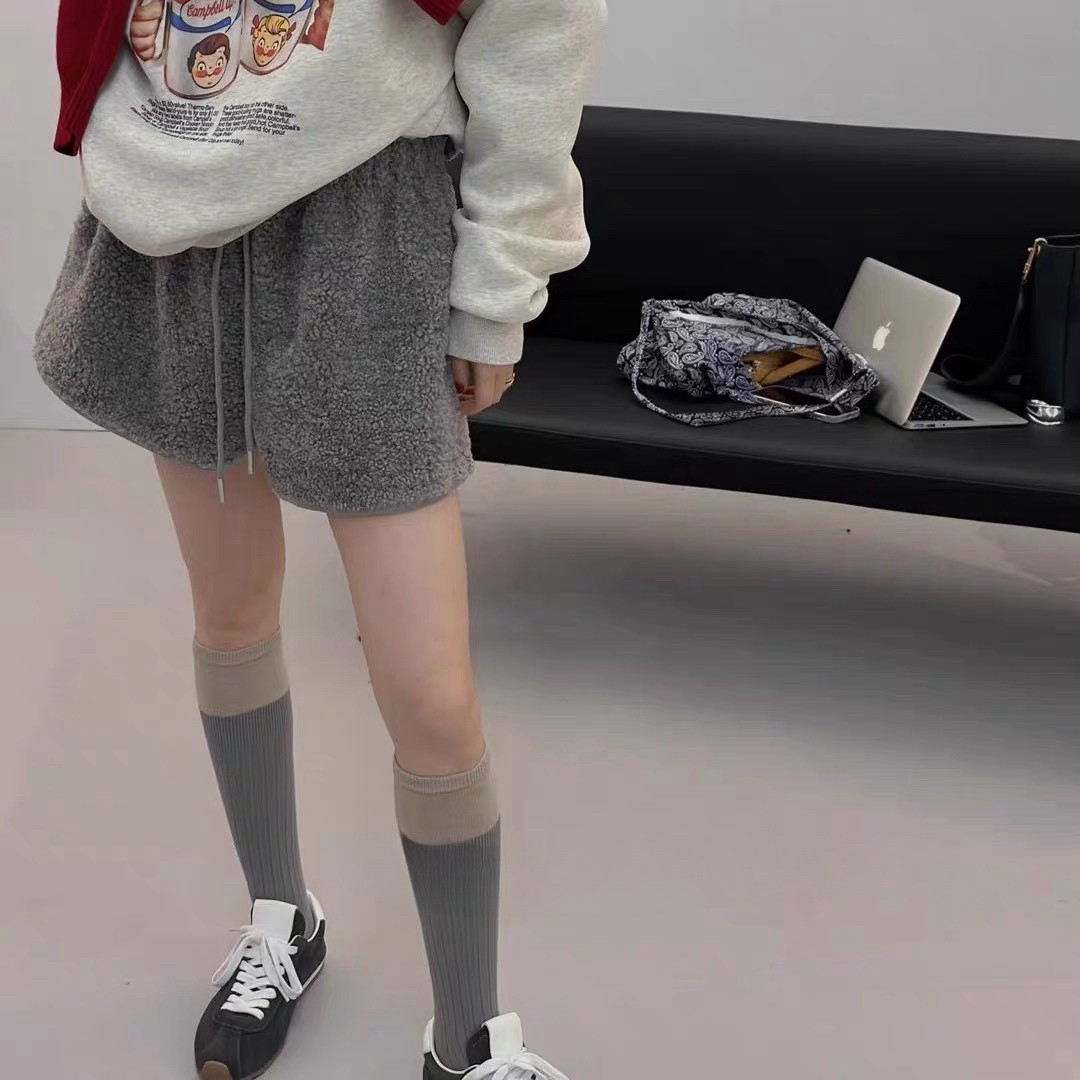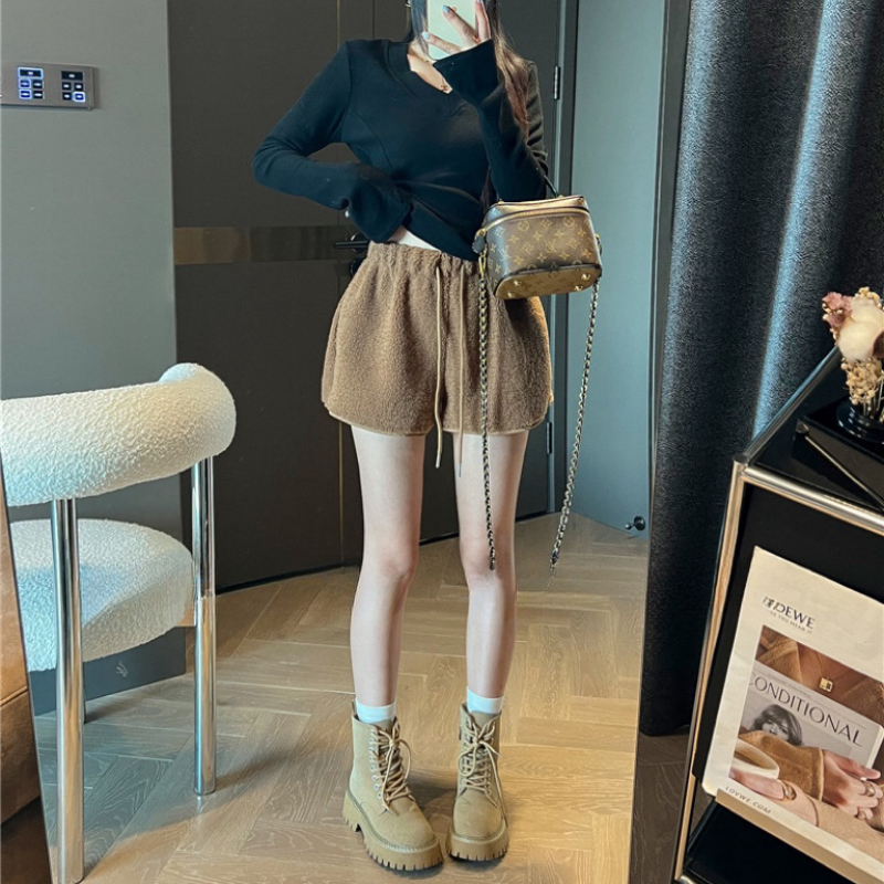 A字裤 羔羔毛氛围感毛绒短裤 韩卷卷毛纯色短裤 减龄 卷卷毛短裤