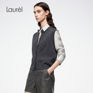 Laurel劳芮菱格纹针织马甲LWL364M03500 金银丝羊绒料