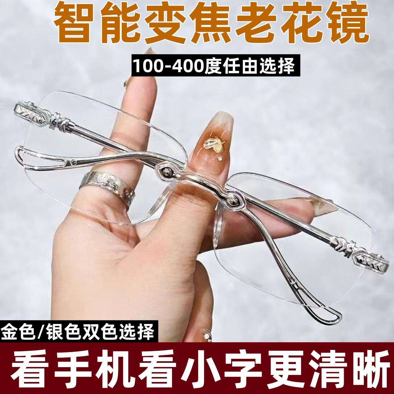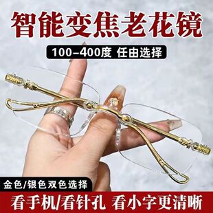 智能变焦老花镜防蓝光中老年看报玩手机专用金色银色花镜 3副