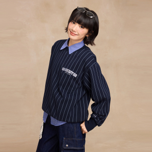 Champion冠军廓形圆领卫衣男25冬季 纯棉加绒条纹上衣女复古秋 新款