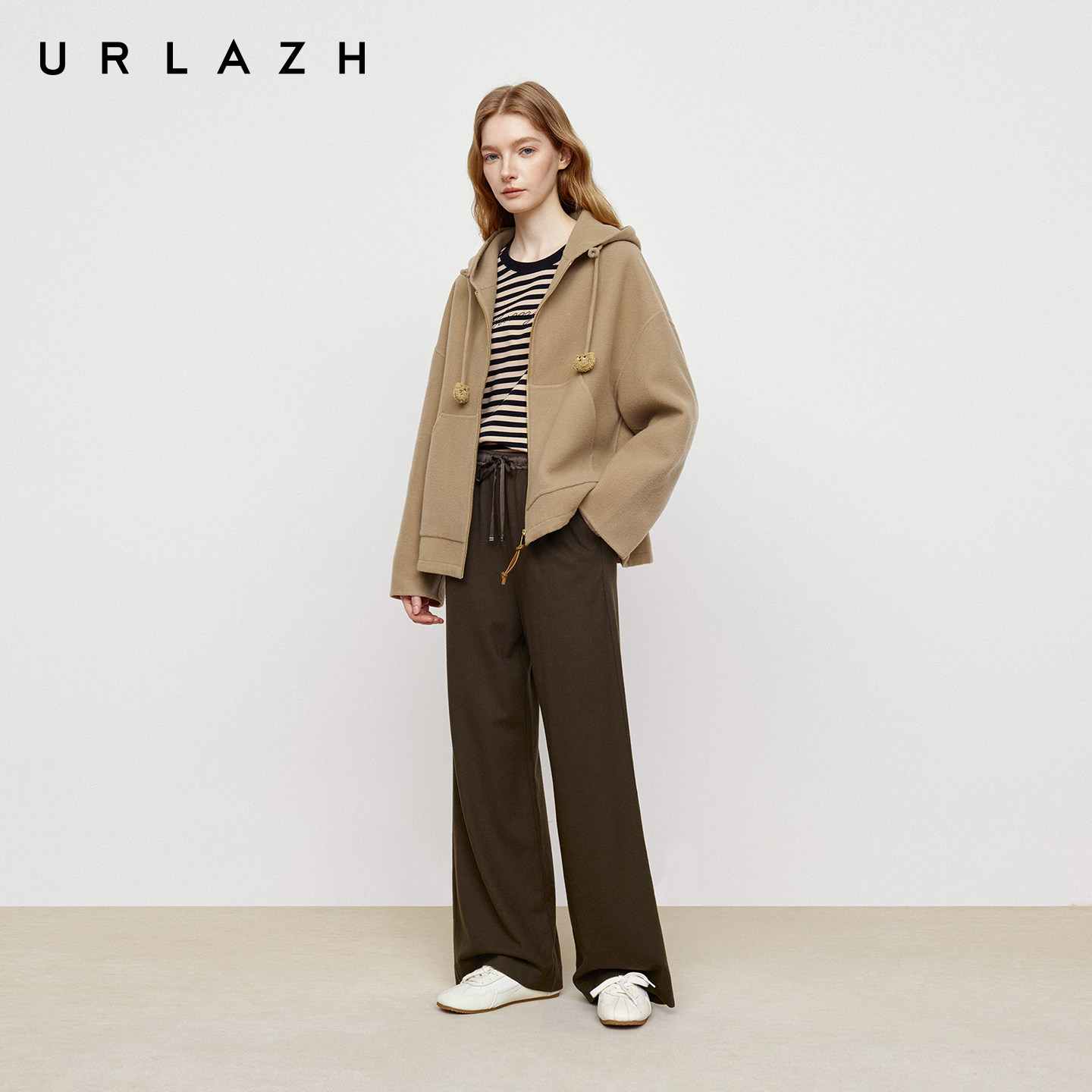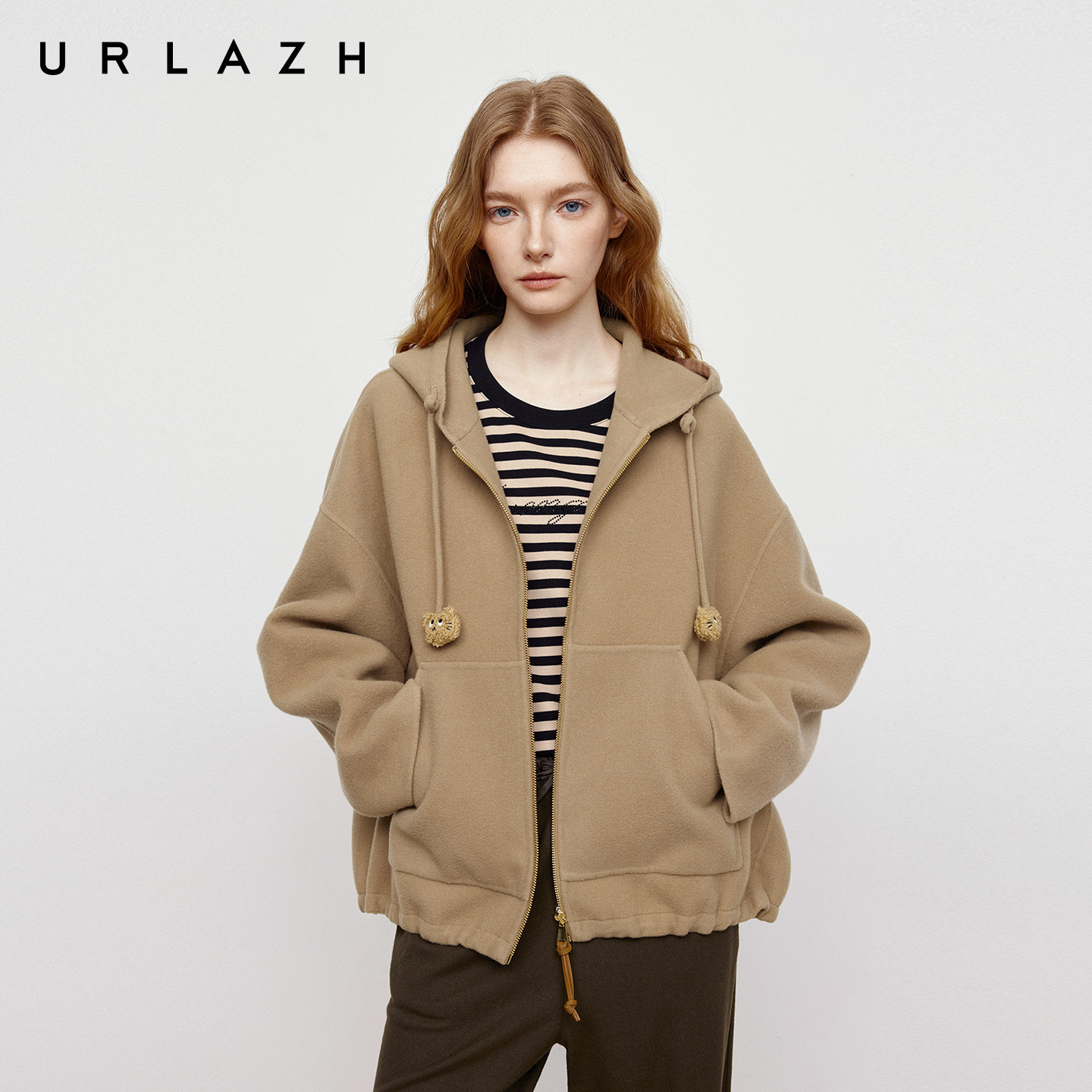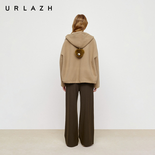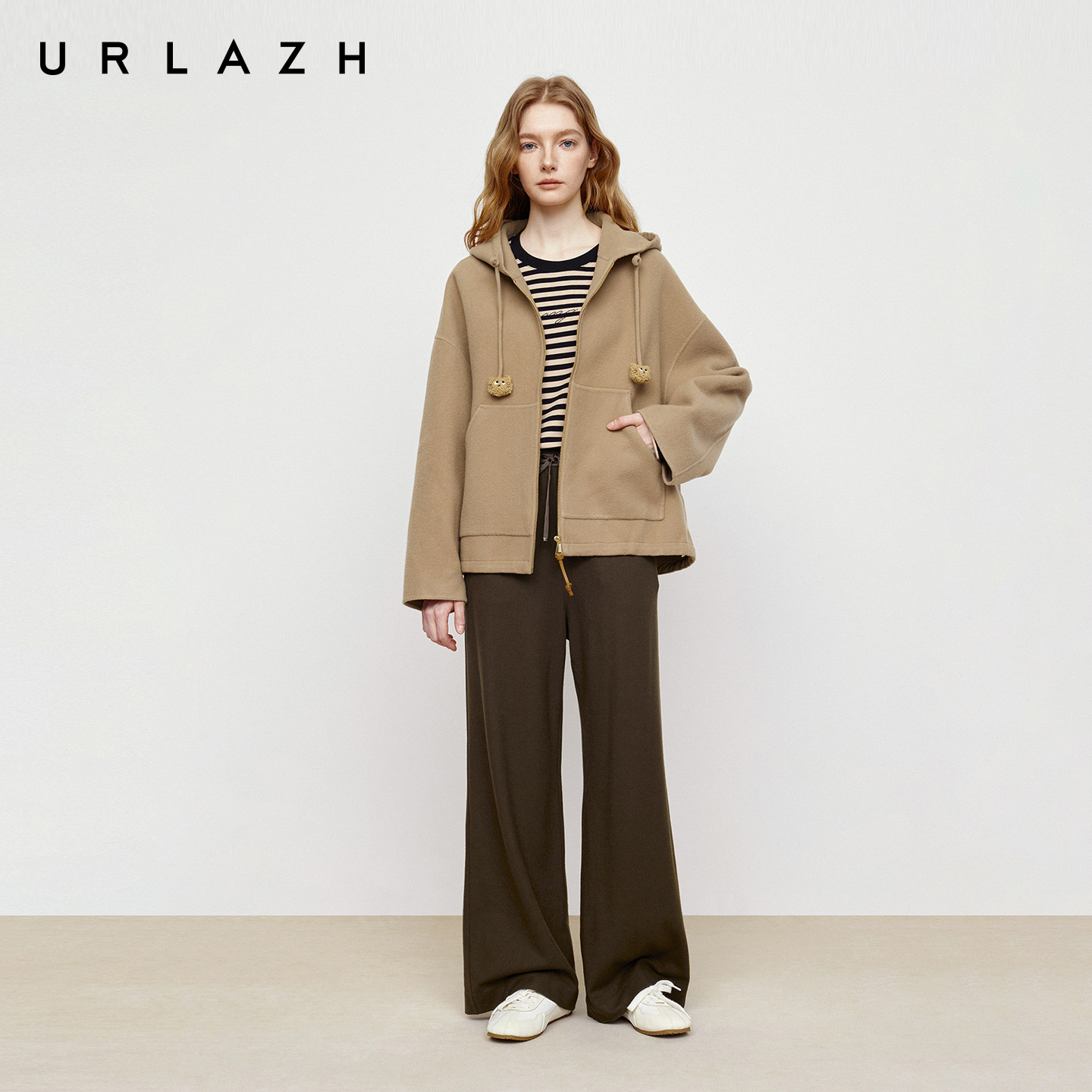 摩卡棕短款 新款 羊毛连帽毛呢外套大衣 URLAZH有兰2025秋季 商场同款