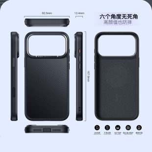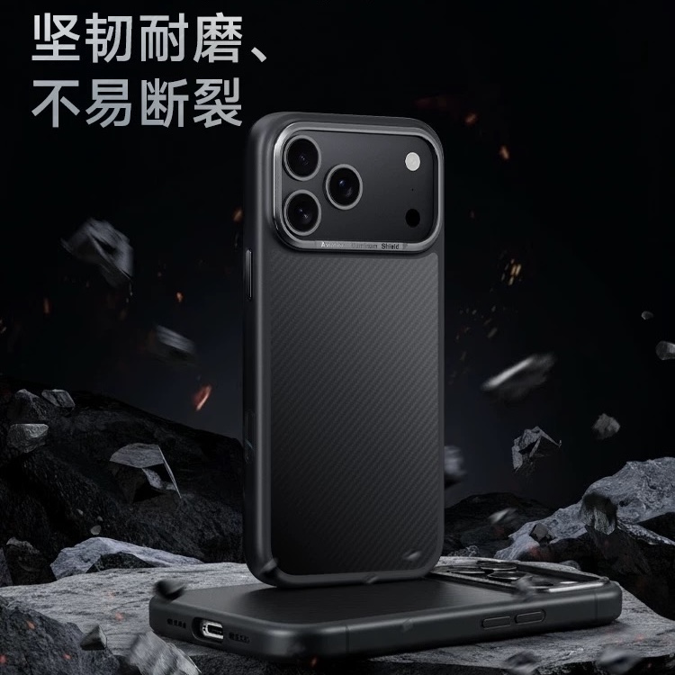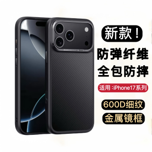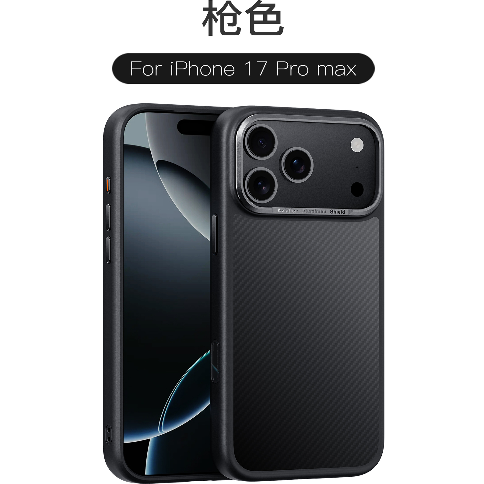 适用苹果17Promax手机壳凯夫拉iPhone17Pro碳纤维磁吸保护套新款 17Air金属镜头防摔商务高级简约软边全包后壳