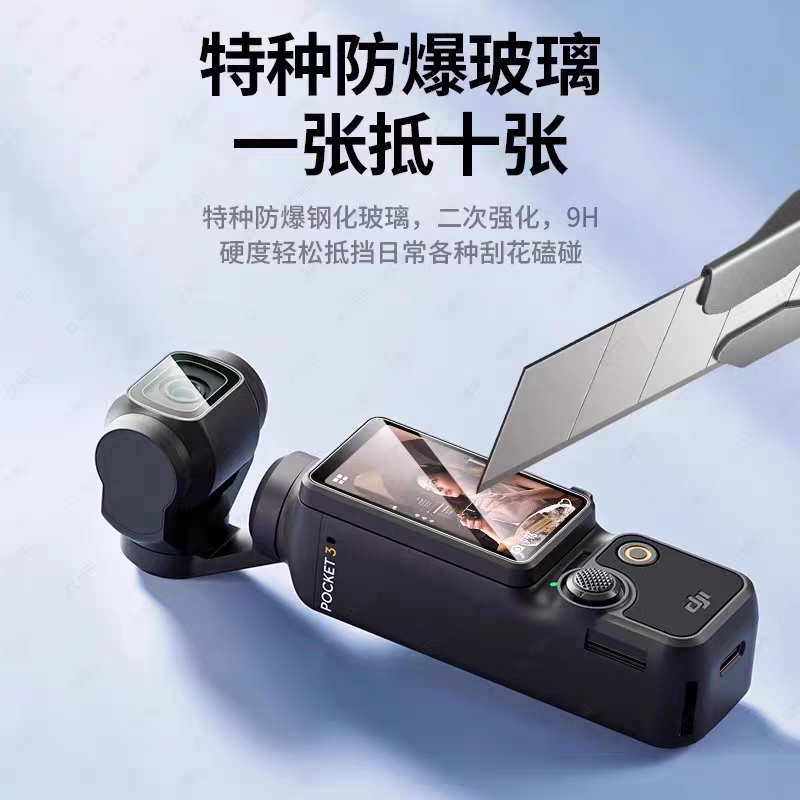 适用DJI大疆pocket3钢化膜Action5Pro屏幕相机膜Action4全屏覆盖osmo前置相机镜头玻璃保护贴膜 秒贴神器