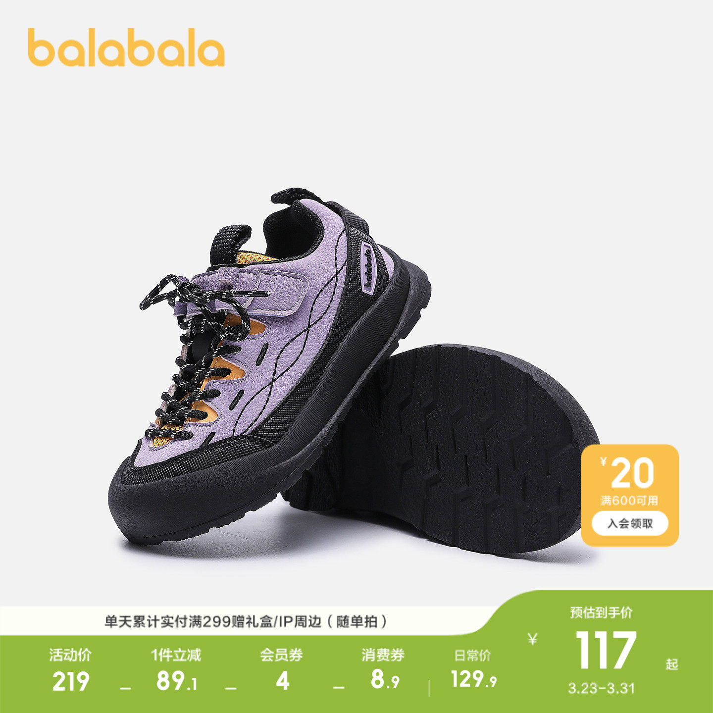 子跑步鞋 巴拉巴拉童鞋 透气防滑秋冬鞋 男童女童运动鞋 子 儿童户外鞋