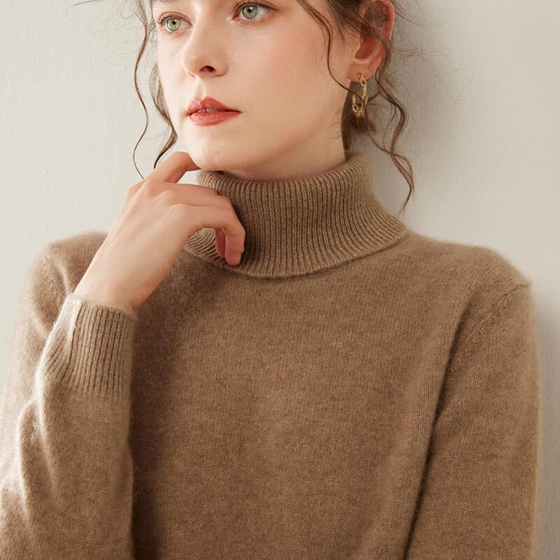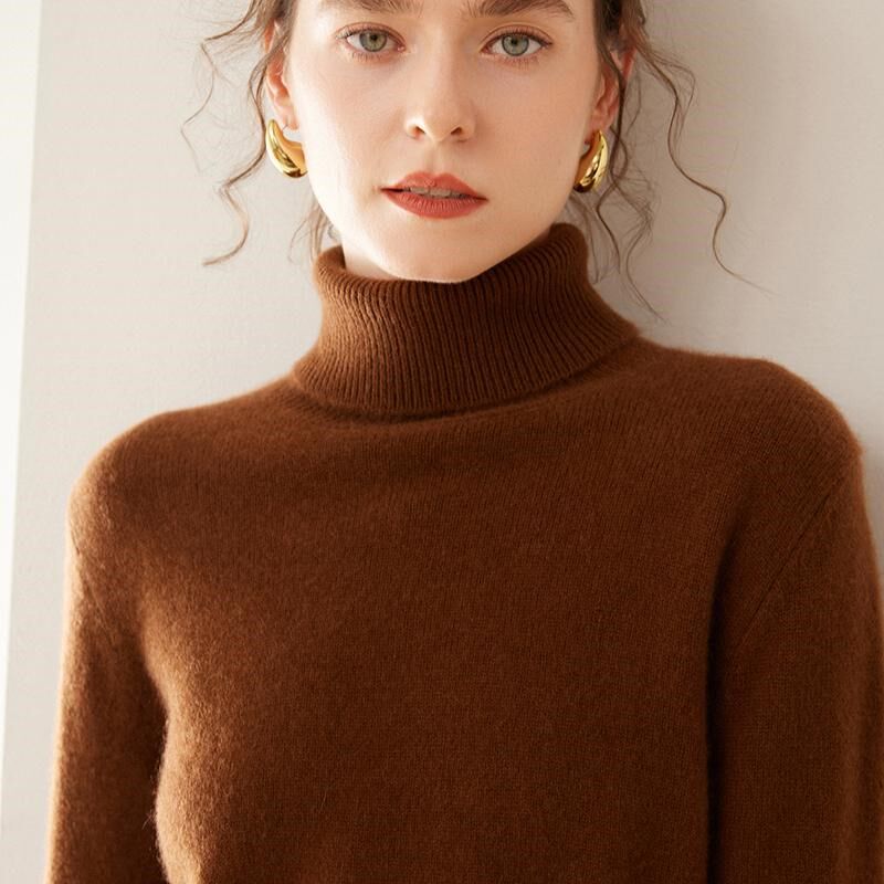 高翻领纯色百搭宽松针织打底衫 100纯山羊绒衫 女高领加厚毛衣冬季