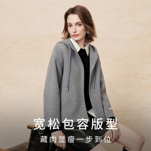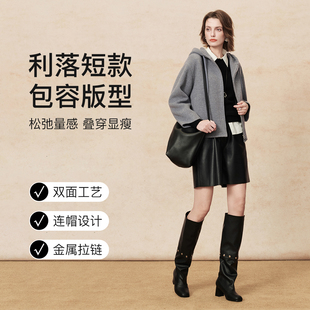 双面呢羊毛大衣女士 连帽短款 FINITY菲妮迪毛呢外套2025年冬季 新款