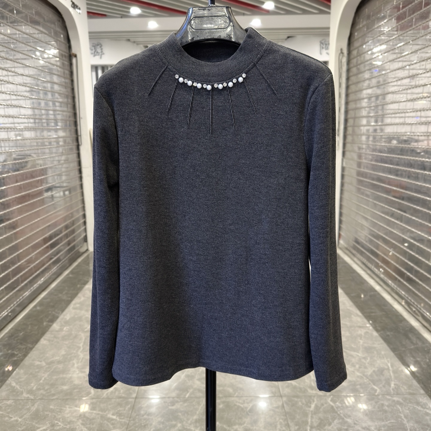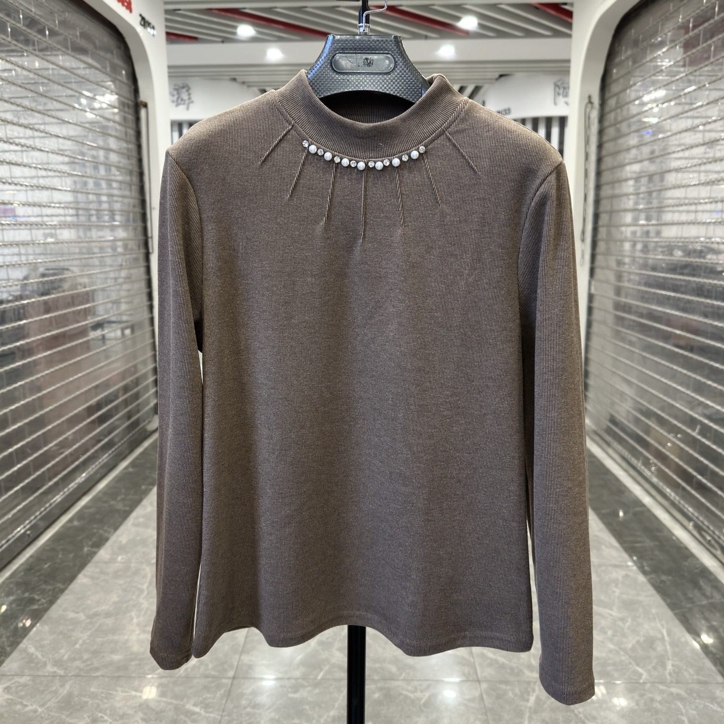 秋冬新洋气内搭双面绒保暖中老年T恤 半高领钉珠打底衫 时尚 妈妈装