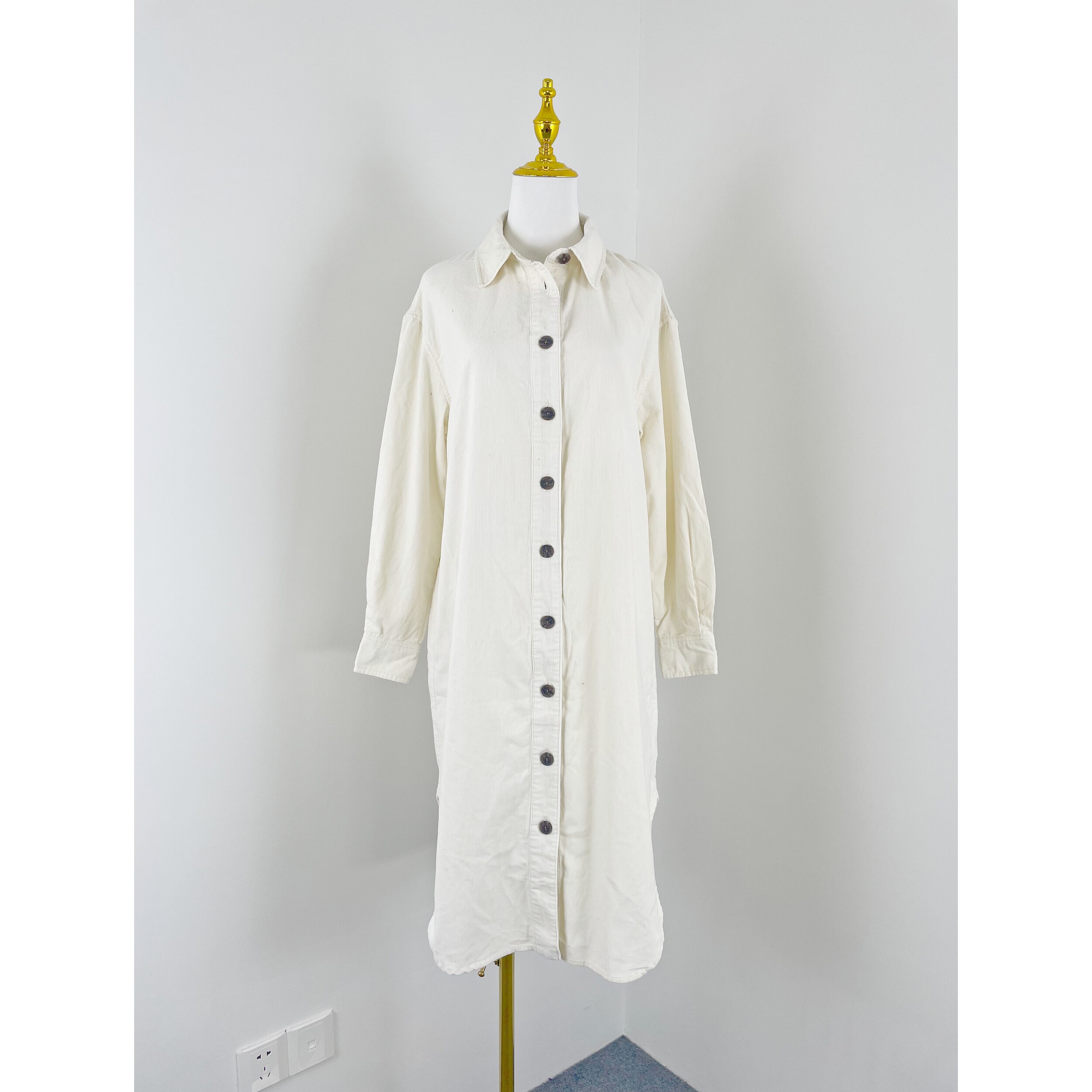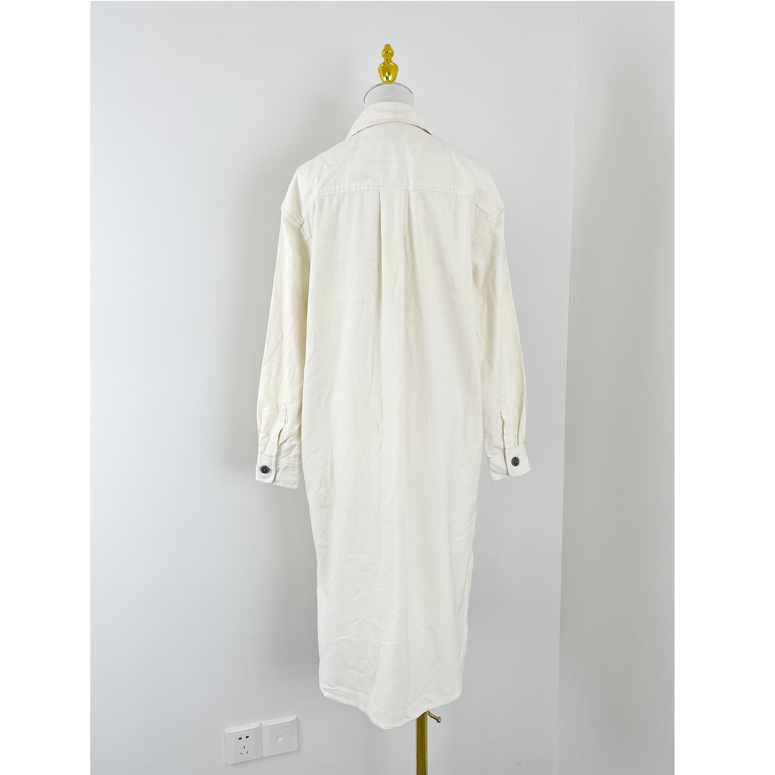 文艺范单排多扣灯芯绒外套 衬衫 J4001外贸新款 女宽松休闲棉质长款