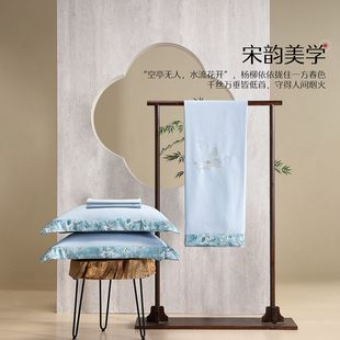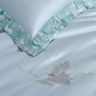 水星家纺国风100支双股长绒棉四件套贡缎高端织锦提花新中式 床品