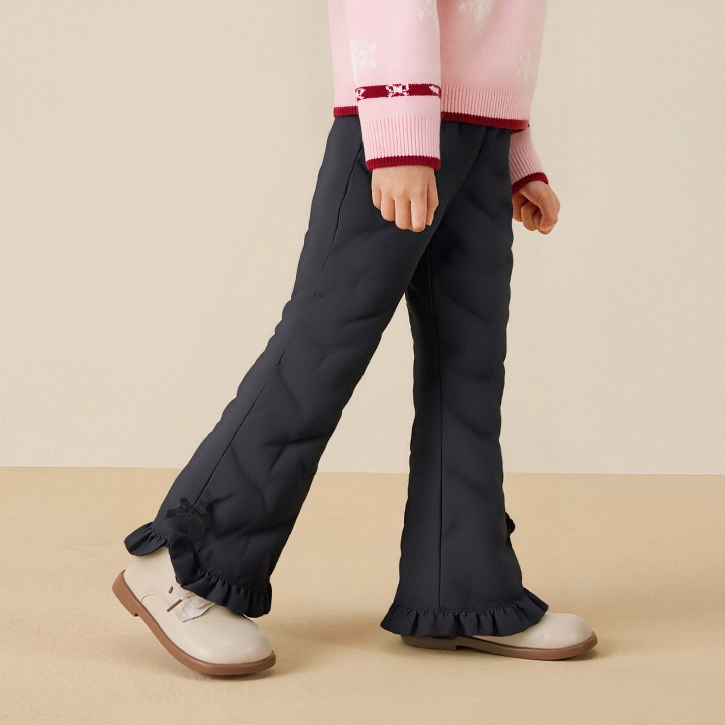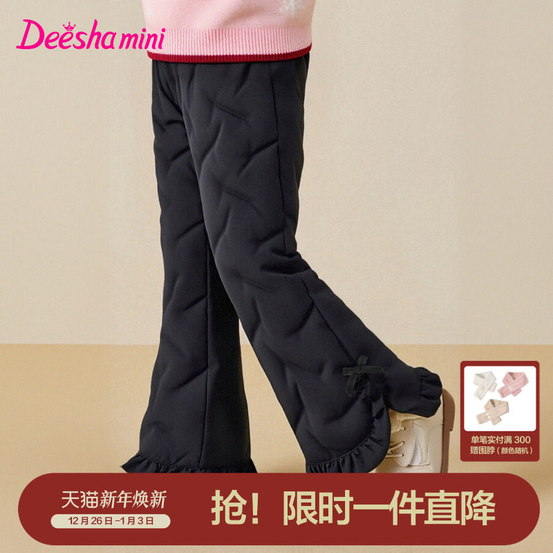 美式 直筒加绒裤 蝴蝶贴布阔腿休闲裤 胖mm显瘦卫裤 子 女秋冬新款 大码