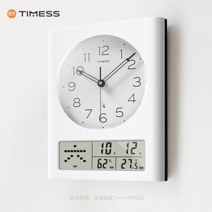 TIMESS钟表挂钟客厅家用时尚 创意静音免打孔挂墙简约石英电子时钟