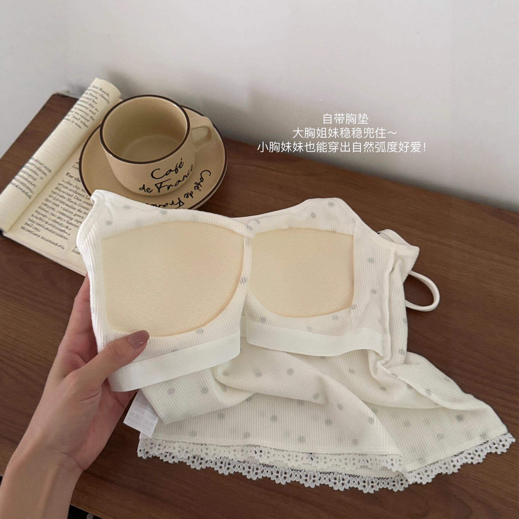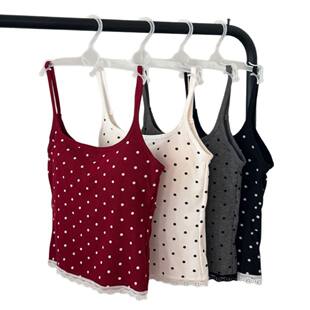 秋冬磨毛保暖吊带背心带胸垫少女风波点蕾丝上衣红色加绒内衣707