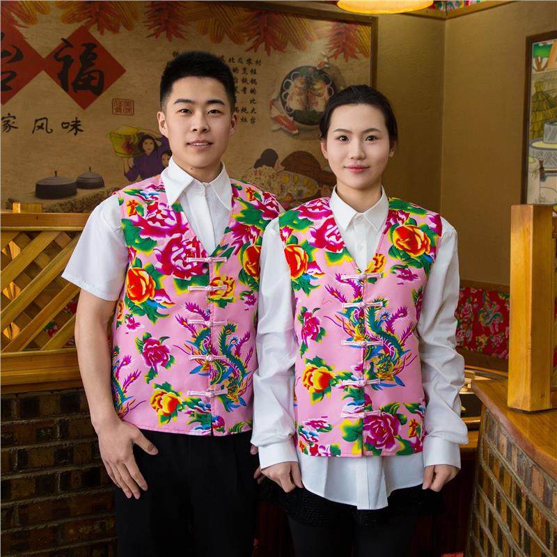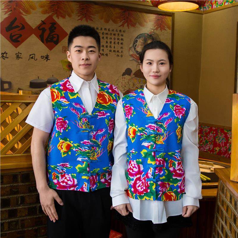 铁锅炖工作装 二人转演出服背心短款 盘扣马甲无袖 东北大花男女装