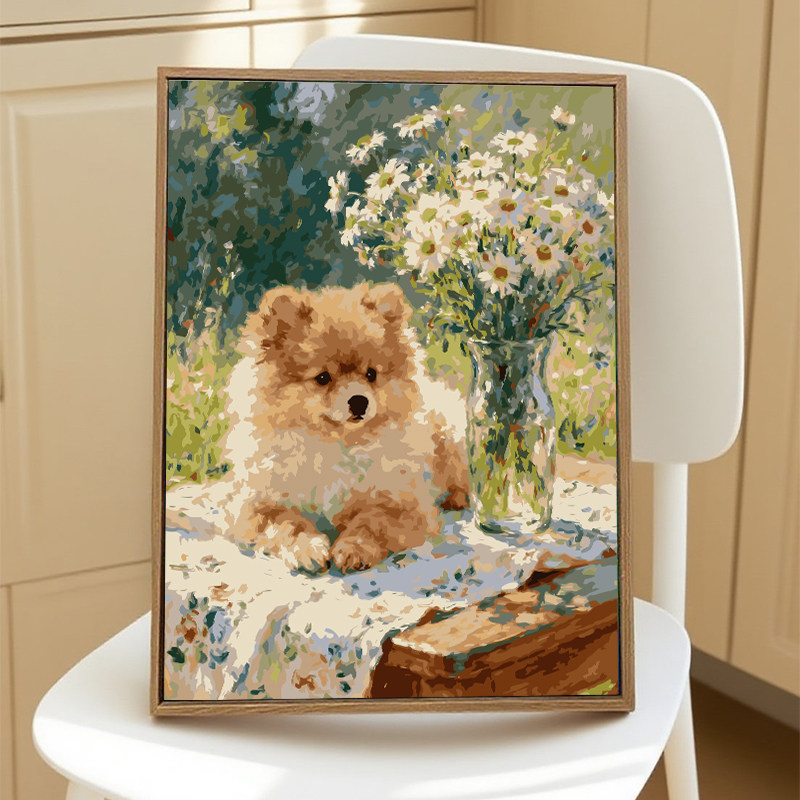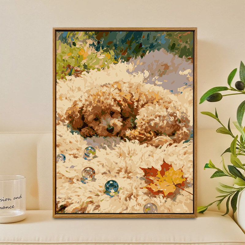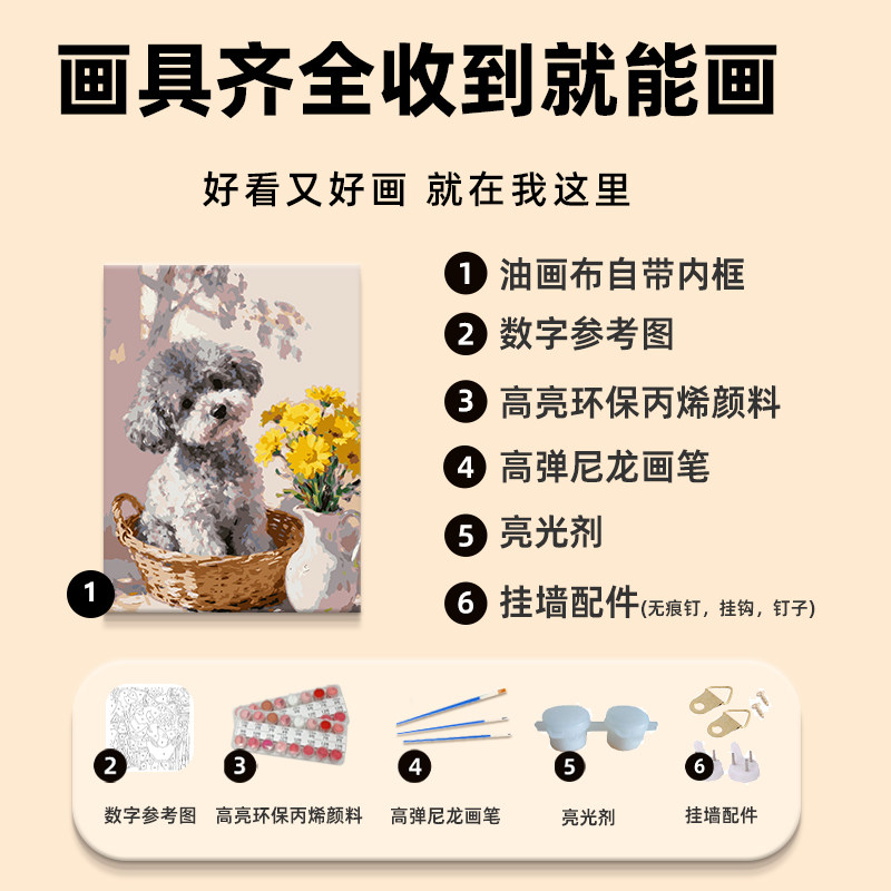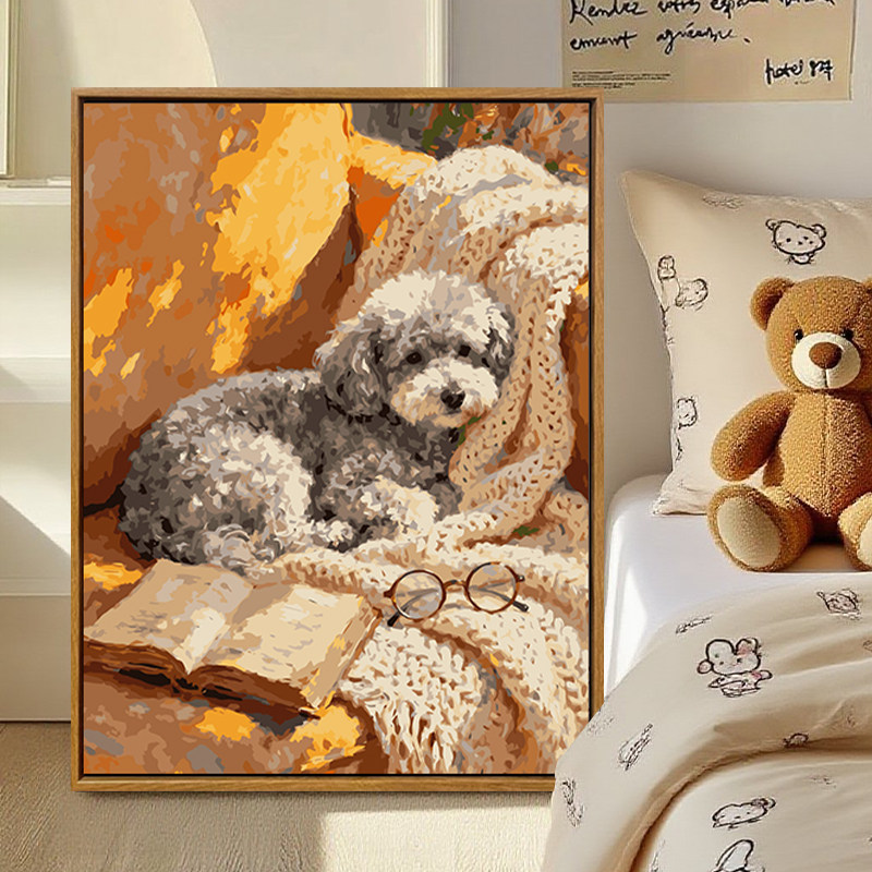 可爱小狗数字油画diy填充填色手工绘治愈系泰迪丙烯油彩画装 饰画