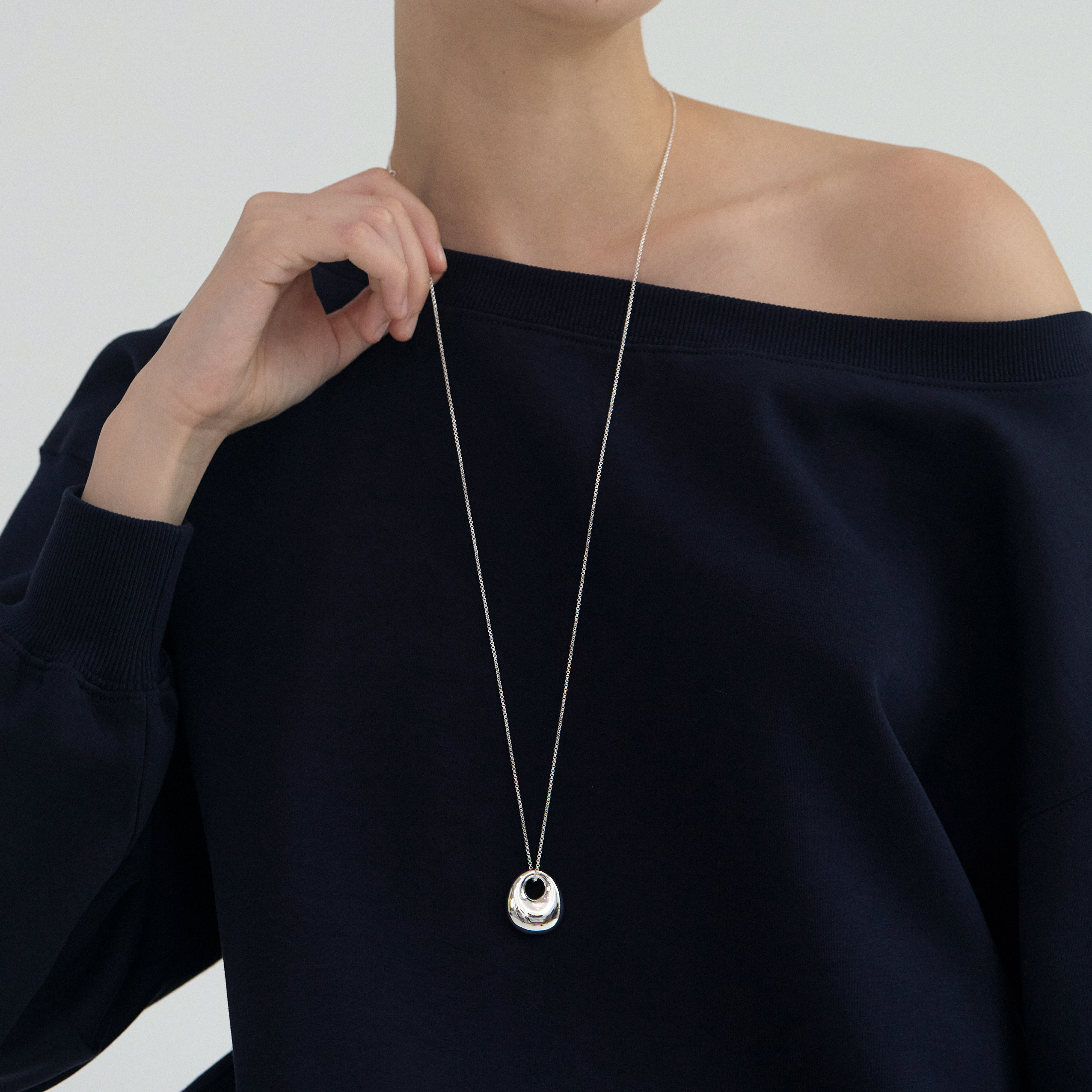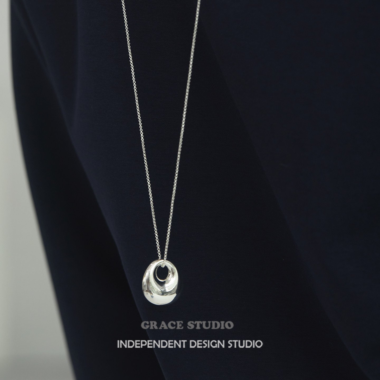 简约艺术女项链吊坠饰品钛钢韩风秋冬毛衣链小众设计百搭银色ins
