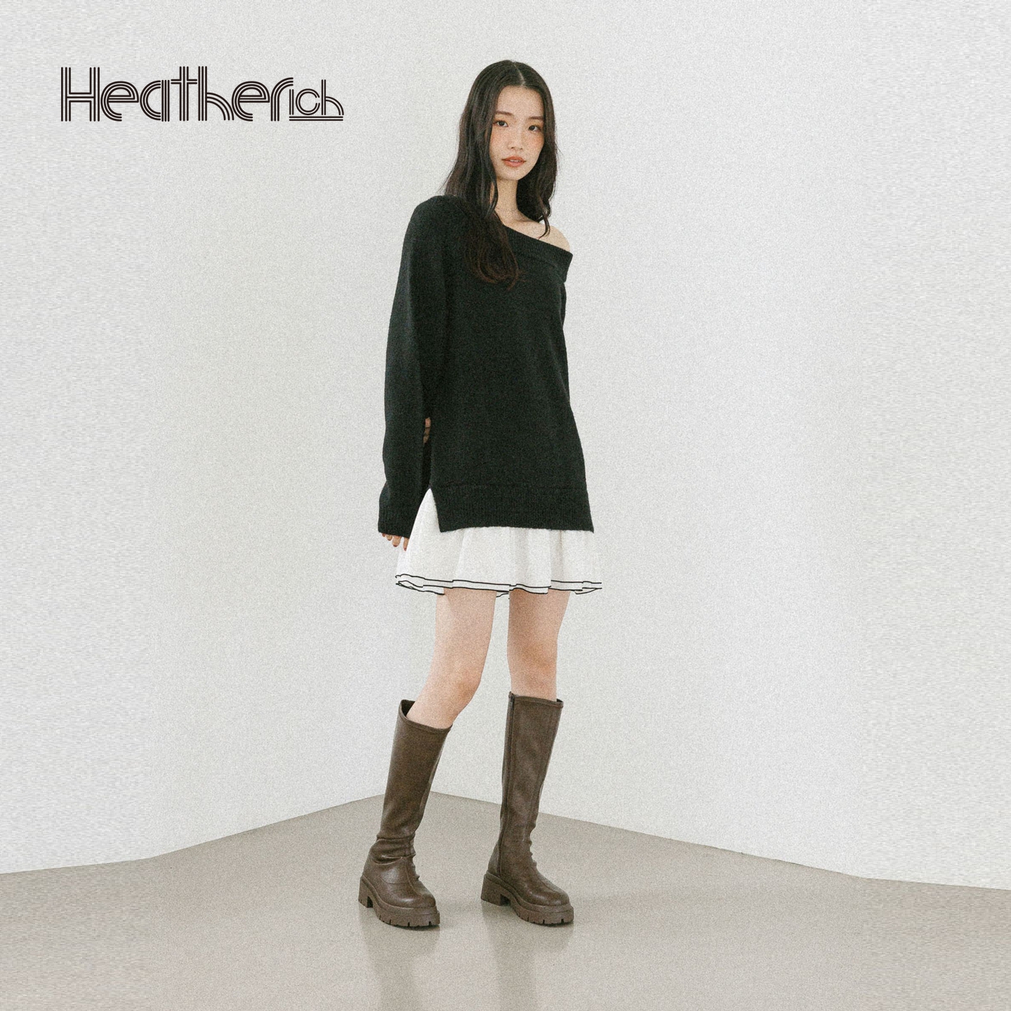 Heatherich毛衣女2025秋冬新款 603964 斜肩一字肩气质温柔针织衫