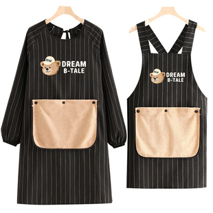 家用防污耐磨上班干活工作服罩衣长袖 布料女围裙做饭厨房透气定制