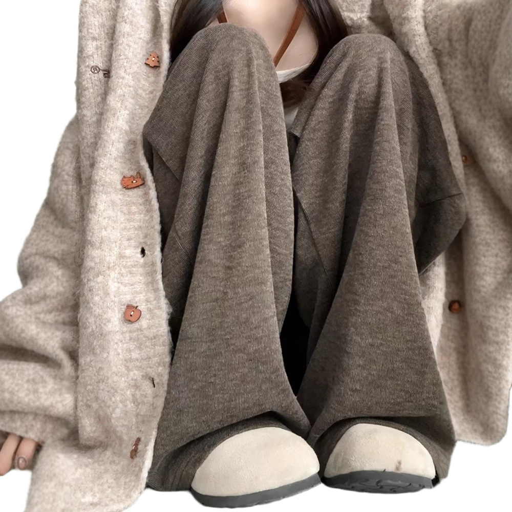 小个子慵懒直筒阔腿裤 咖色糯米裤 美拉德宽松休闲裤 2025新款 女秋季