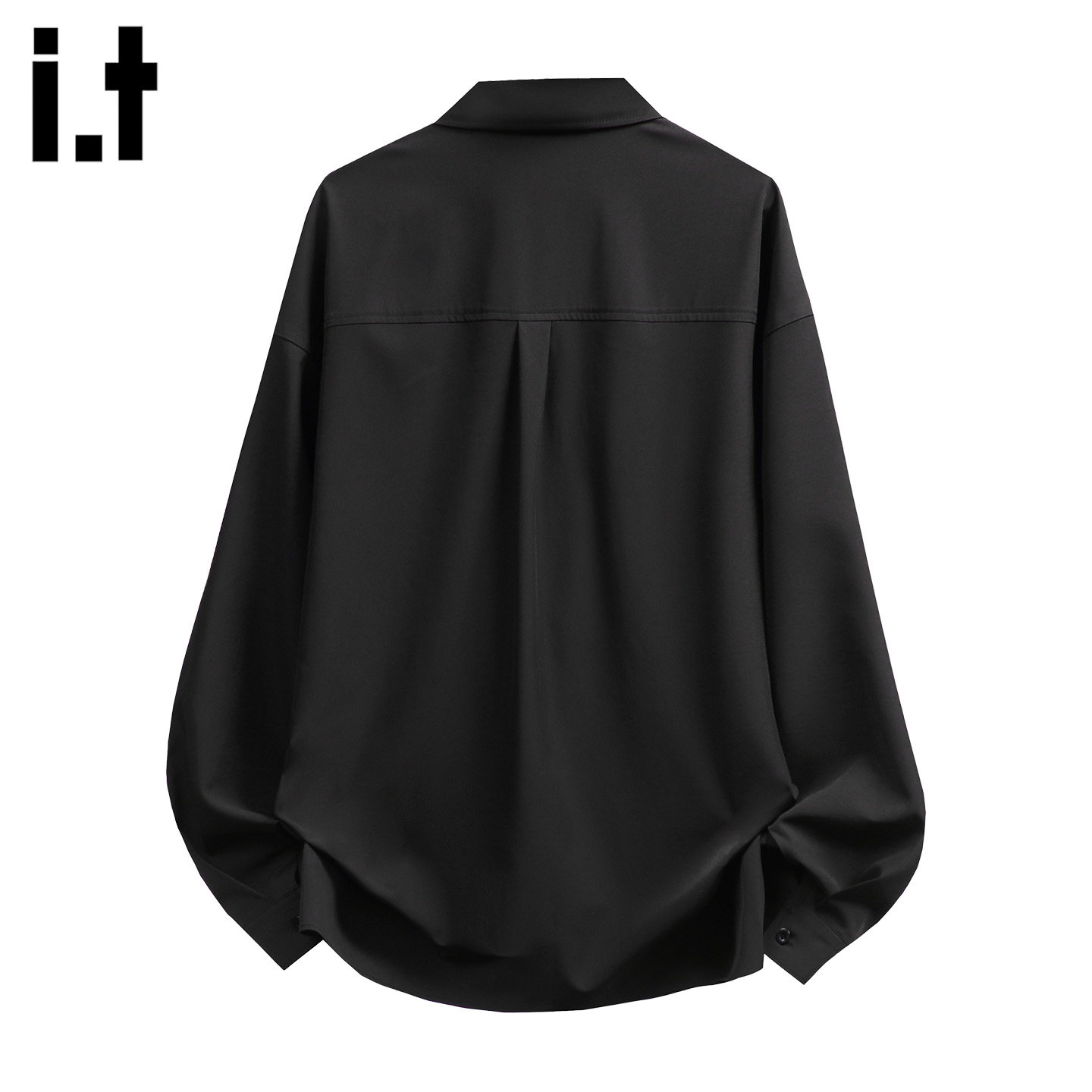 男士 衬衫 FIVECM青年痞帅黑色垂感长袖 2025春秋高级感上衣 5cm