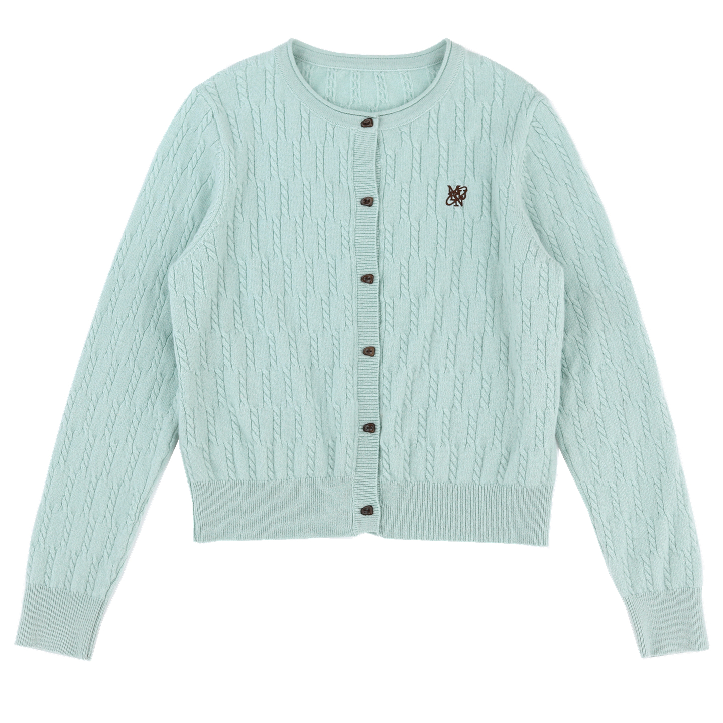 显瘦软糯 英伦学院风100羊毛绞花毛衣刺绣减龄开衫 精分 薄荷曼波