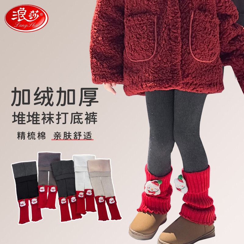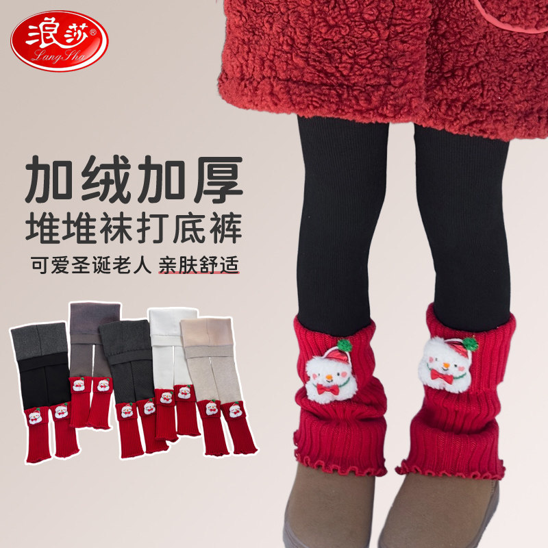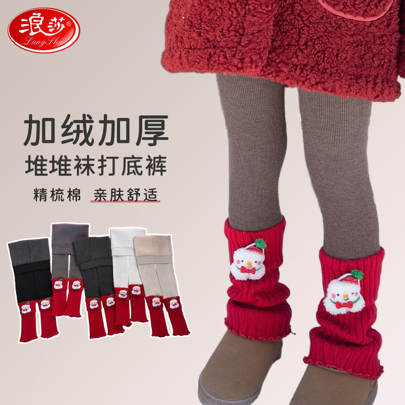 袜 女孩连裤 浪莎儿童秋冬加绒加厚打底裤 女童袜套拼接保暖九分裤