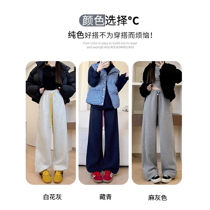 束脚休闲阔腿小个子卫裤 加绒棉裤 女秋冬2025新款 灰色羊羔绒运动裤