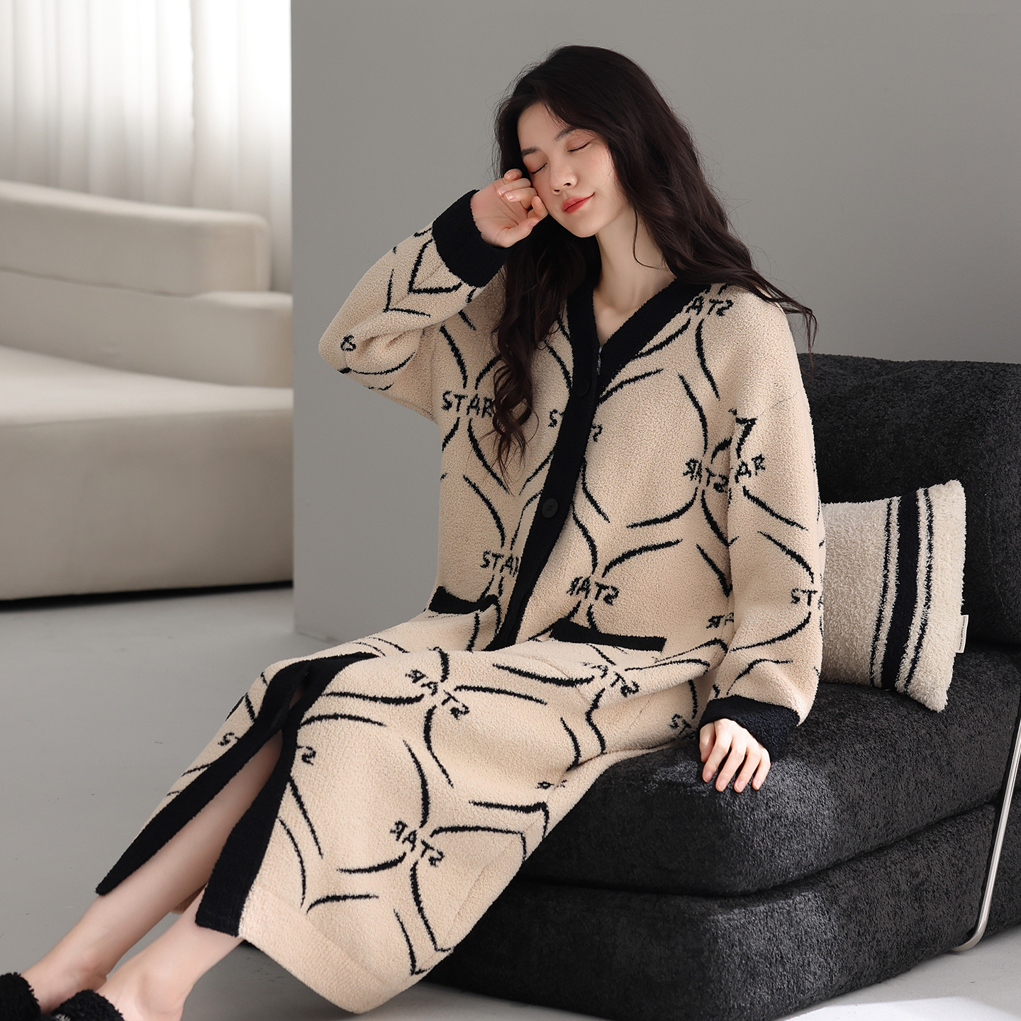 加绒加长睡袍睡裙 睡袍家居服睡衣保暖冬季 行走 大被子珊瑚绒长款