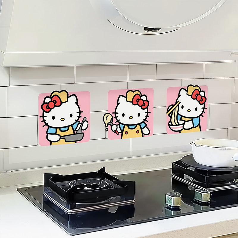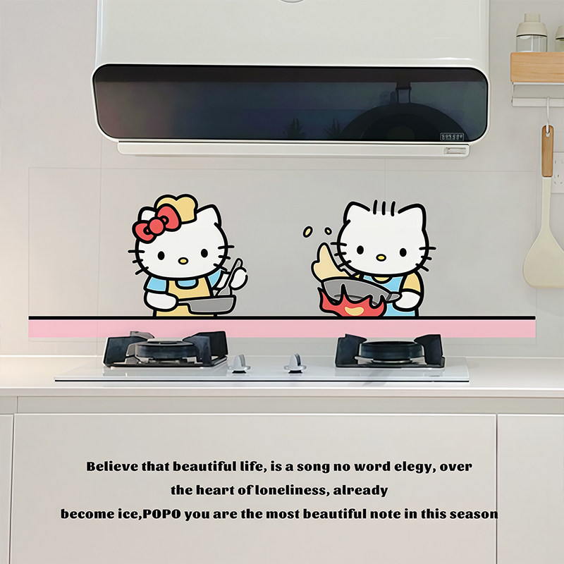 哈喽kitty厨房防油贴纸静电防水防火耐高温灶台瓷砖专用保护墙贴
