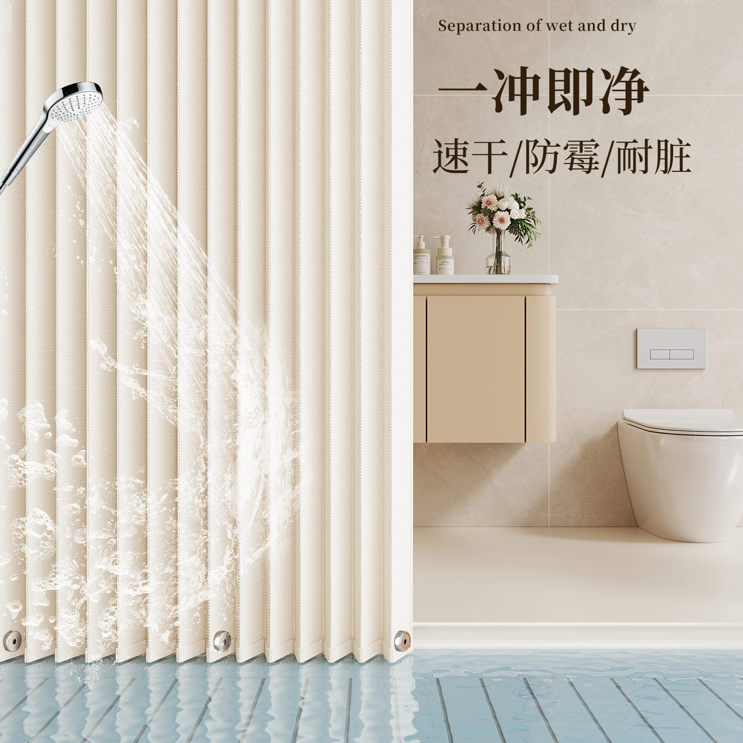 卫生间高档浴帘布免打孔防水防霉速干遮挡浴室门帘隔断窗帘挂帘子