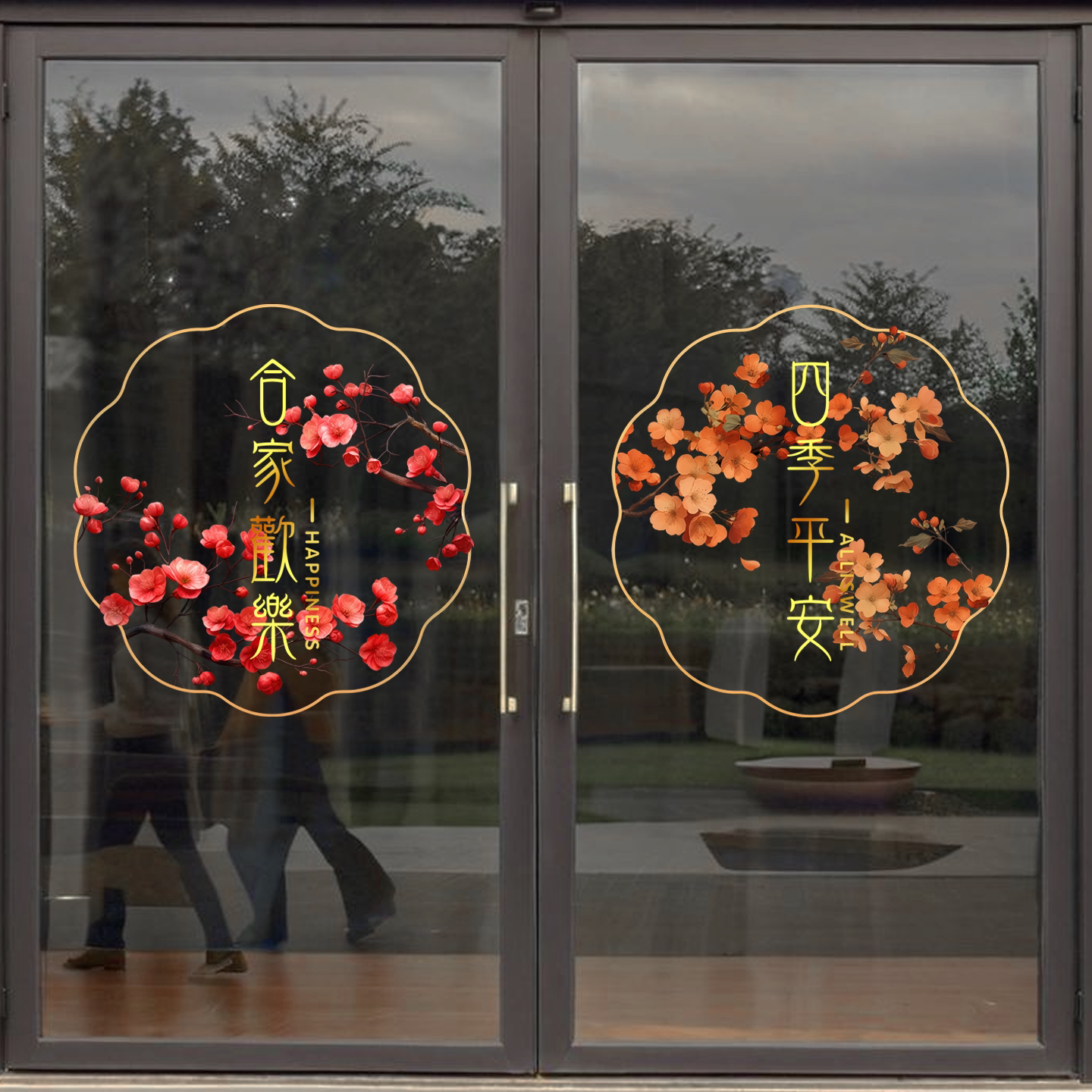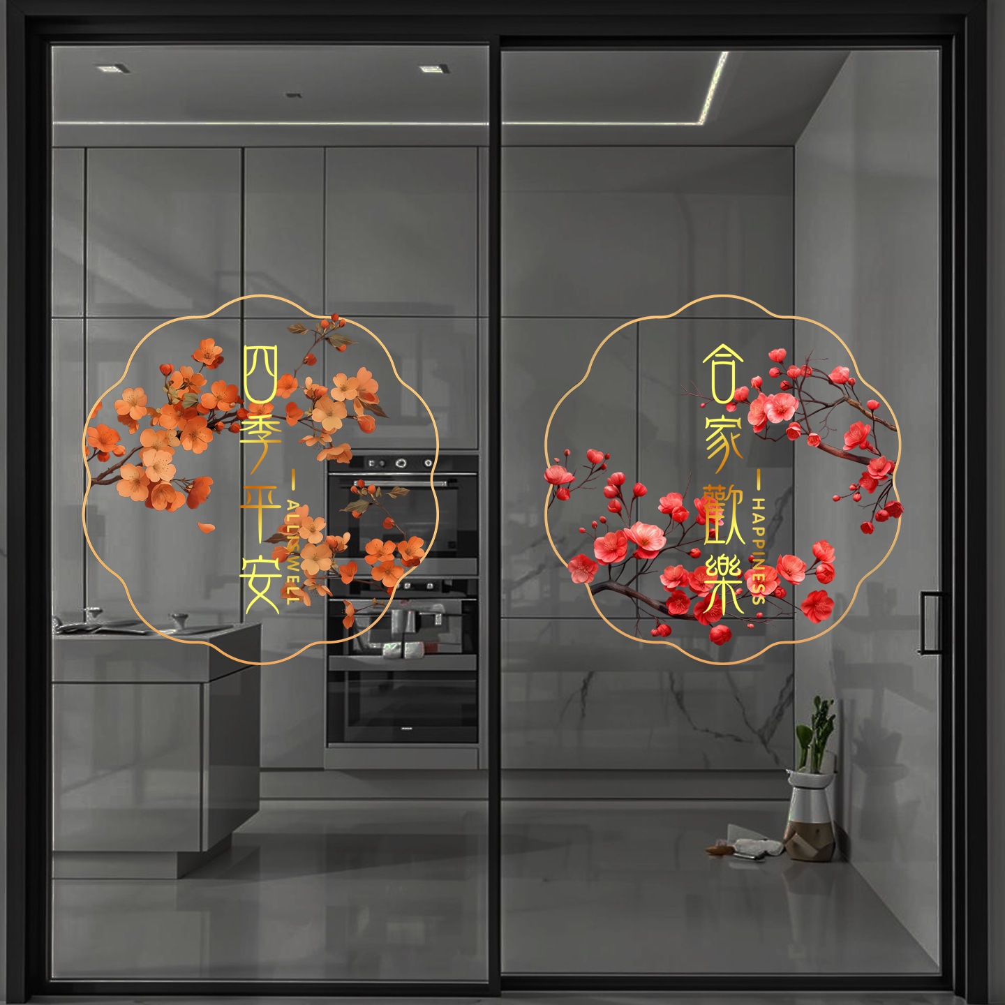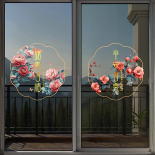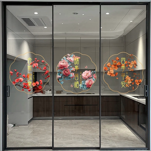 玻璃防撞装 饰静电窗花贴纸厨房阳台推拉门鲜花卉植物高级感复古画