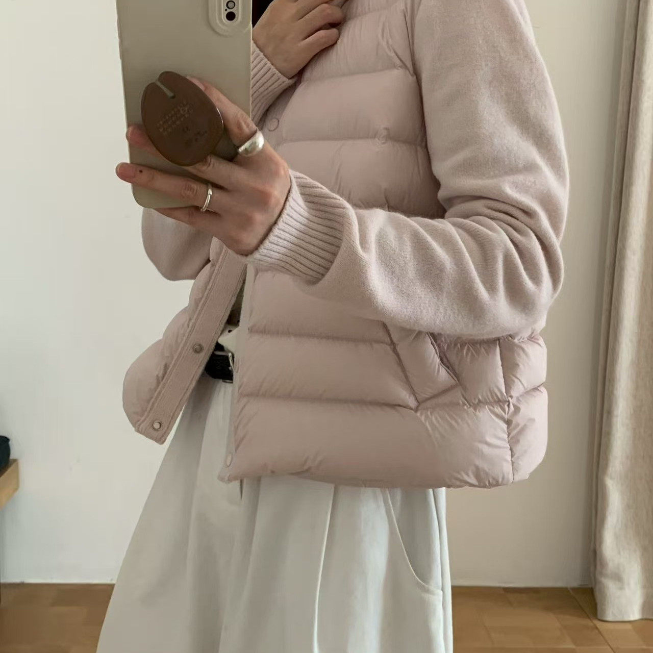 新国标90白鸭绒羽绒服2025新款 秋冬外套潮 女针织立领拼接韩国新款