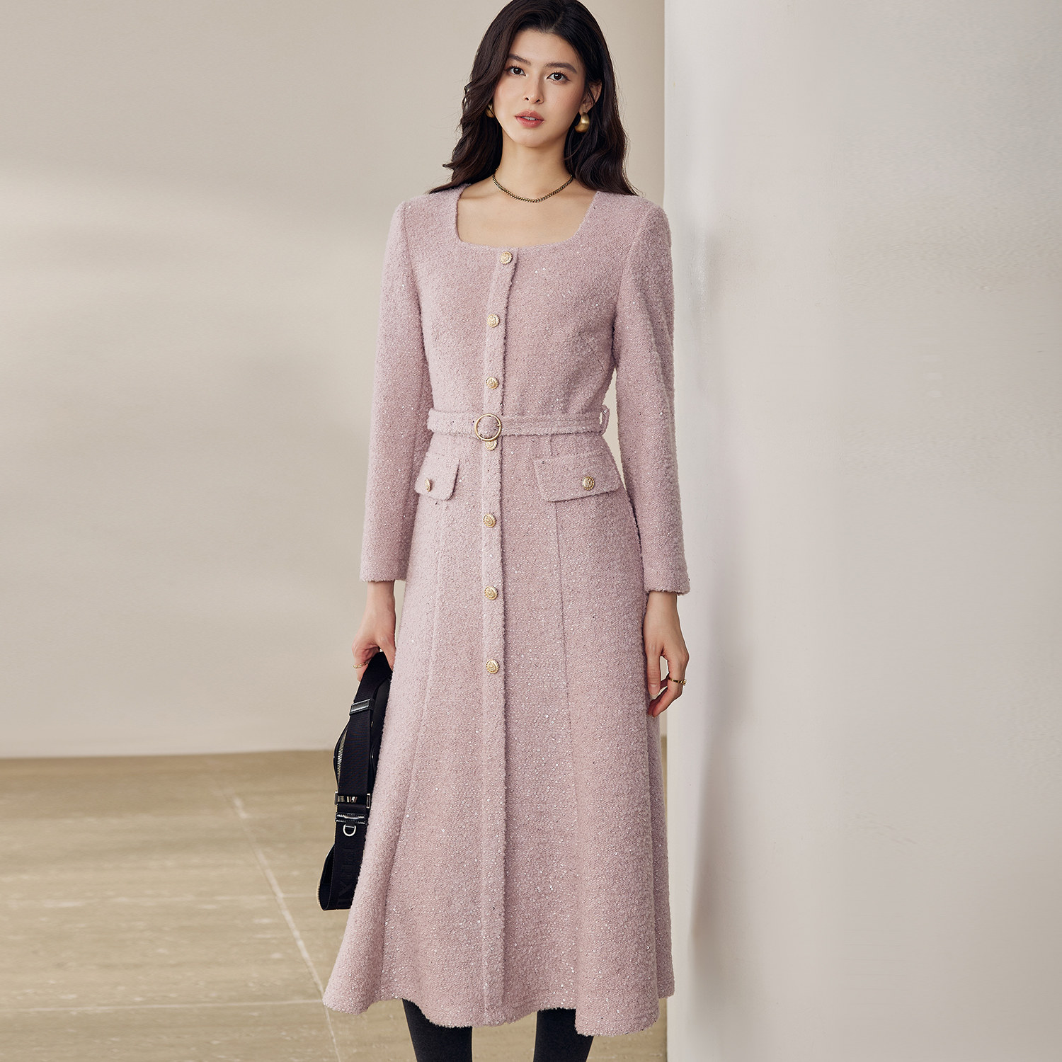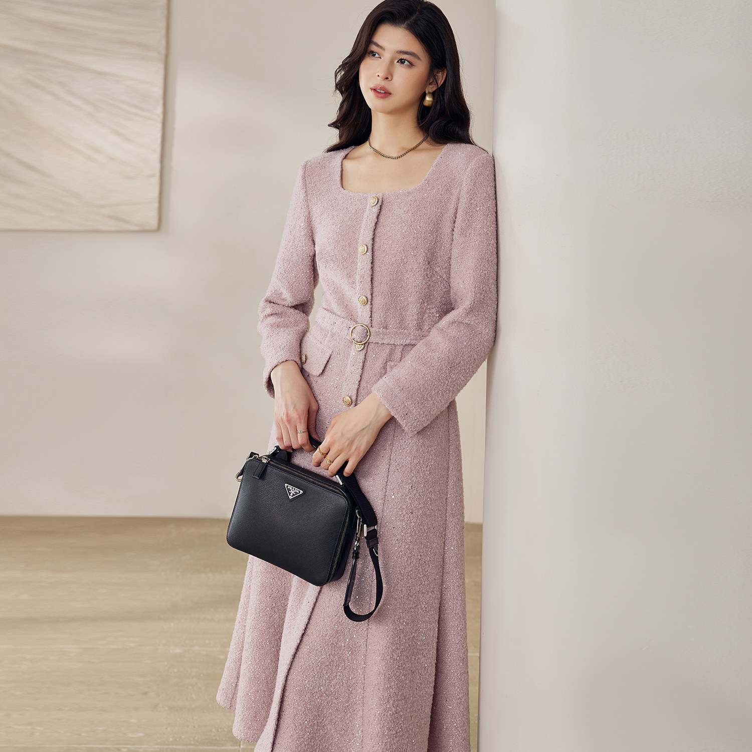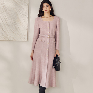 罗衣法式 连衣裙高级感重工亮片收腰鱼尾公主裙13077 约会方领长袖