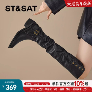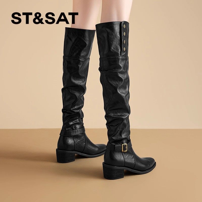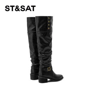 星期六过膝长筒靴女2025新款 显瘦长靴女厚底增高堆堆骑士靴直 冬季