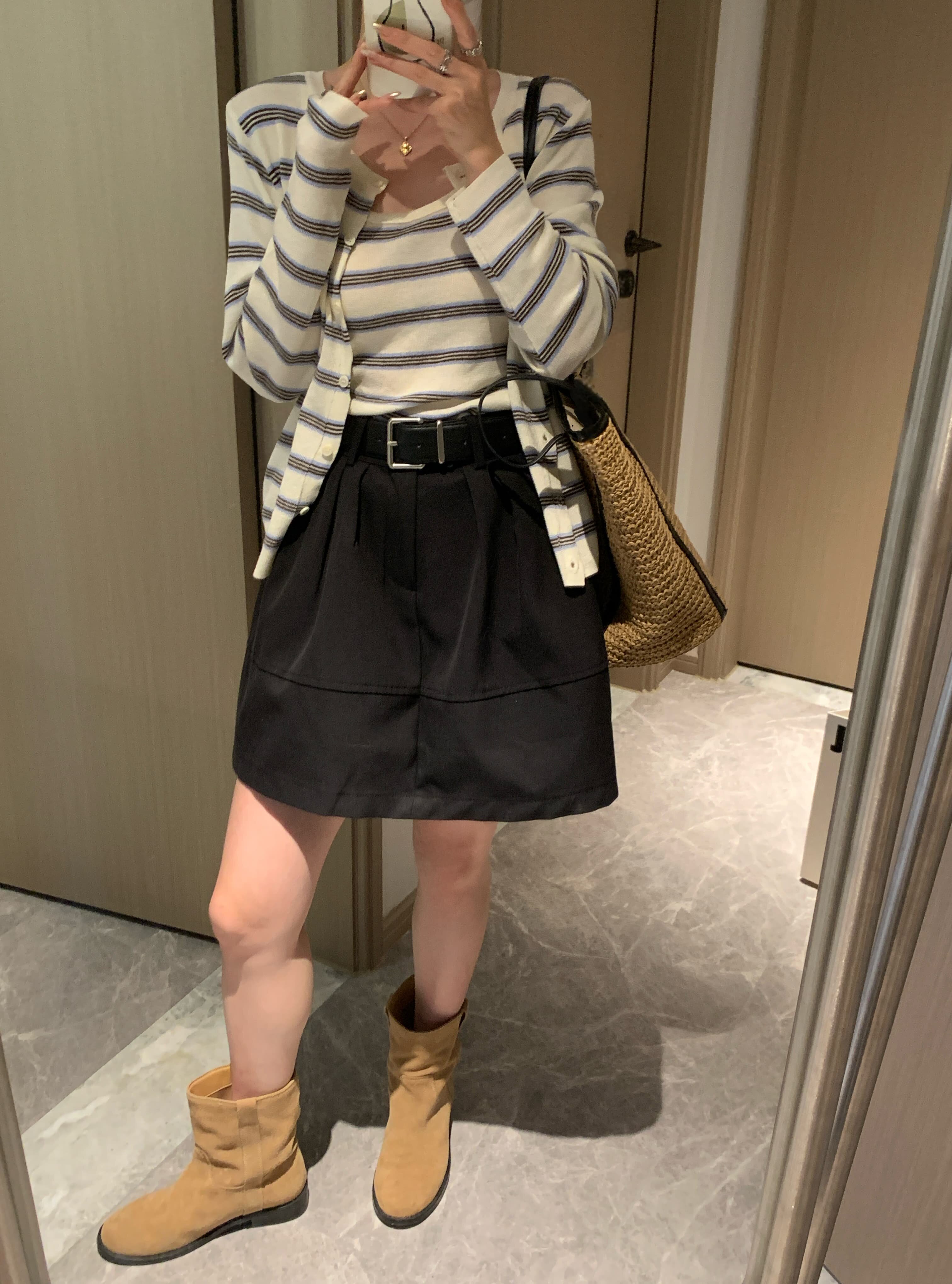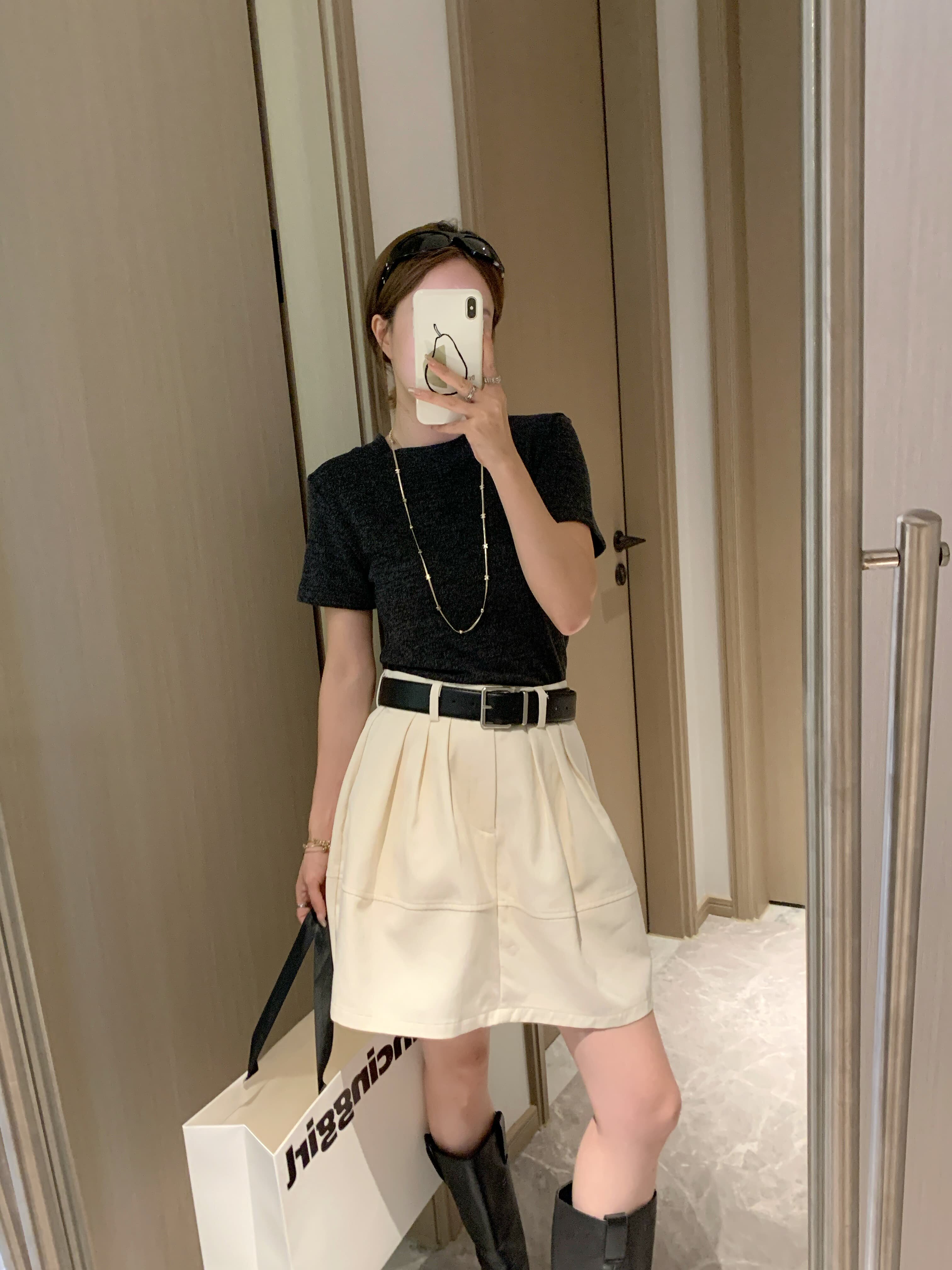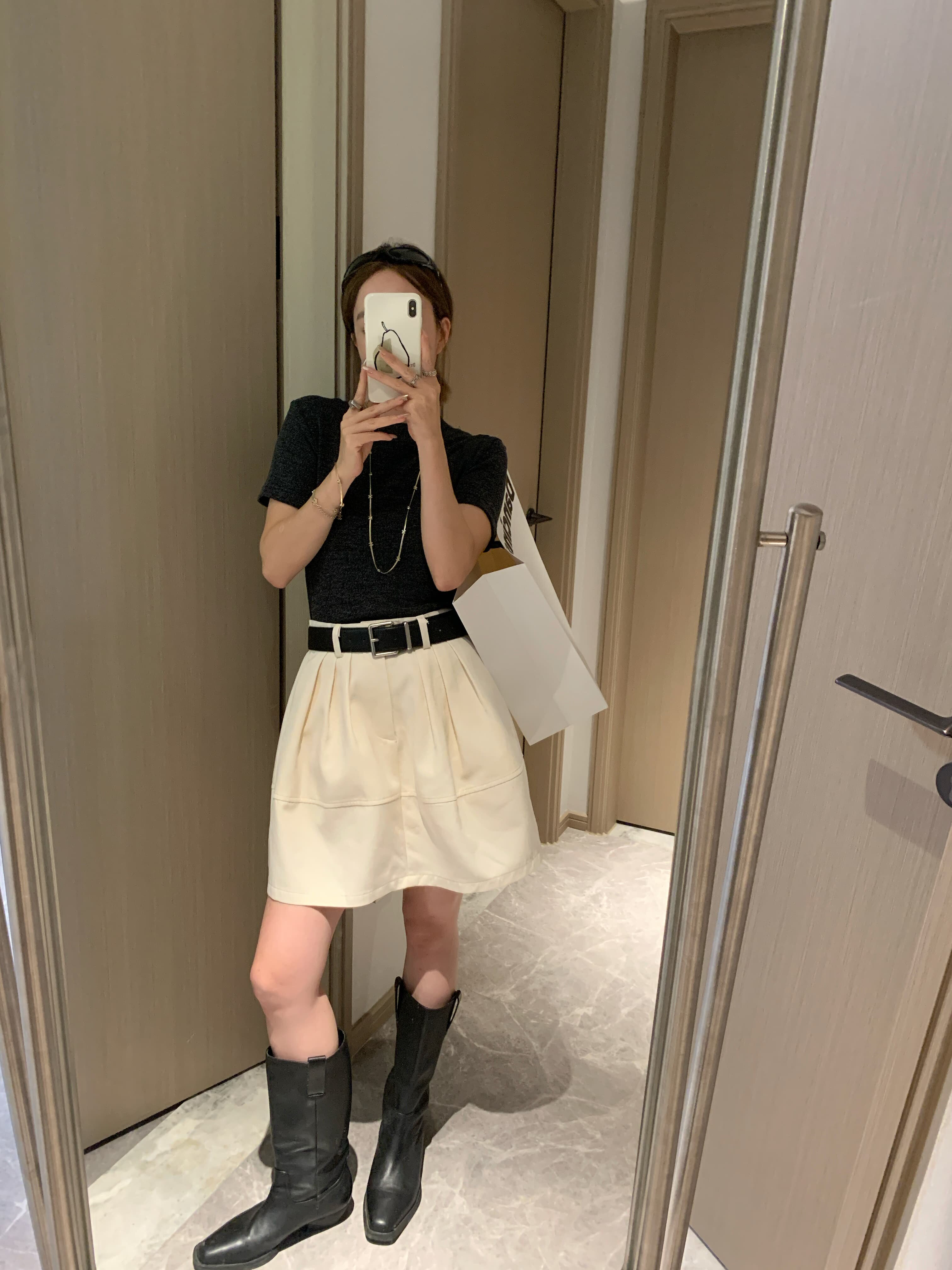 腰带25秋冬韩版 高腰A字短裙 显瘦花苞伞裙直筒裙加厚 香蕉派派