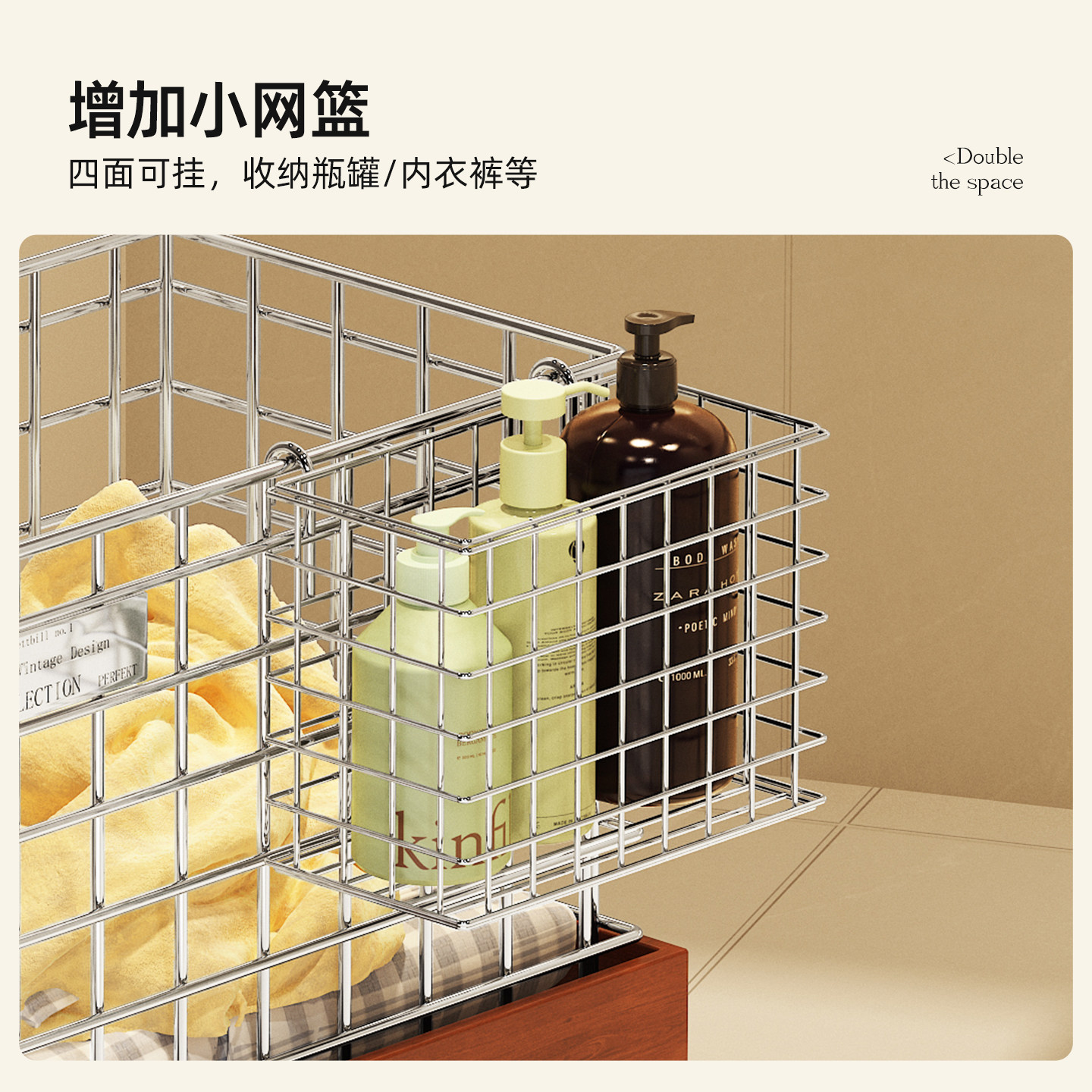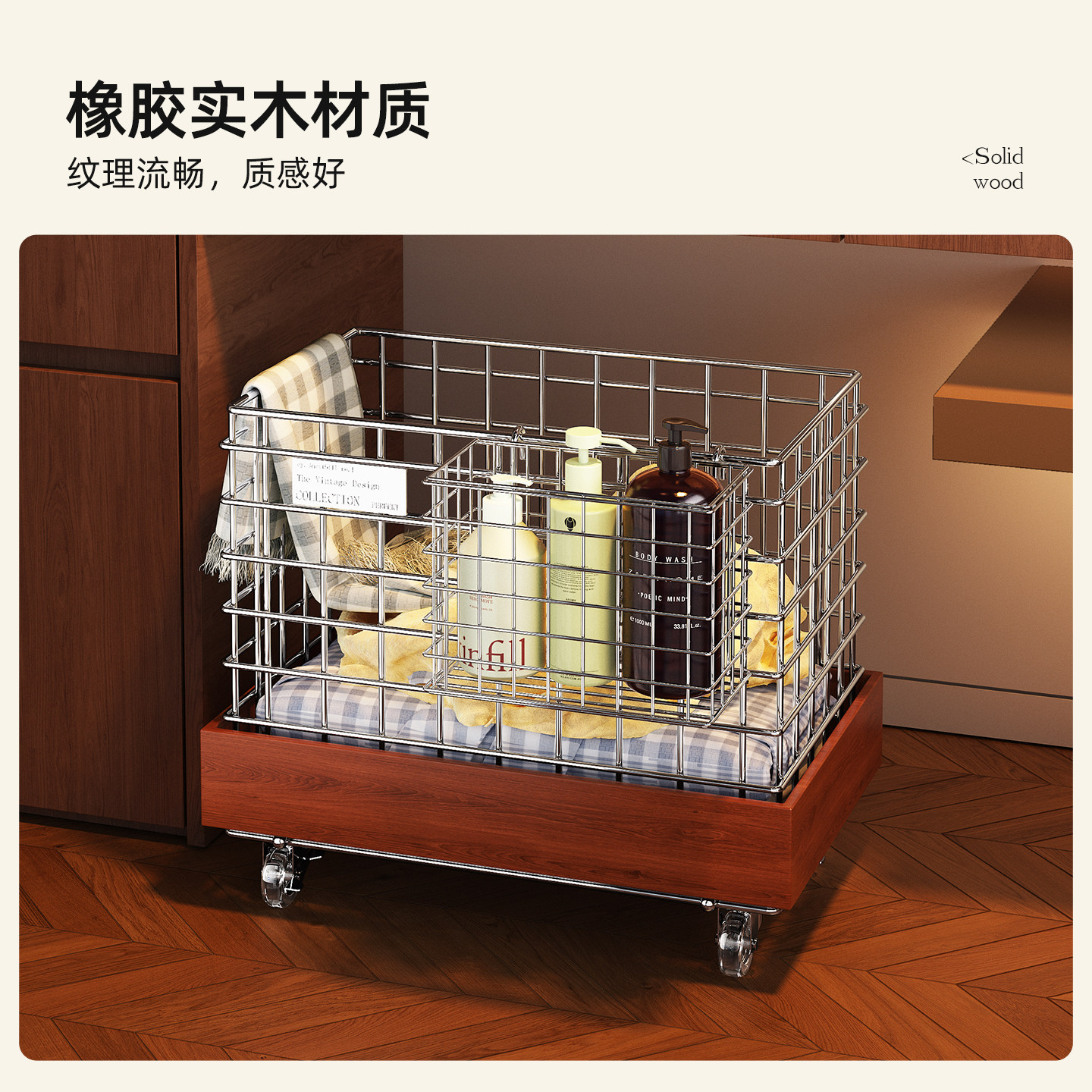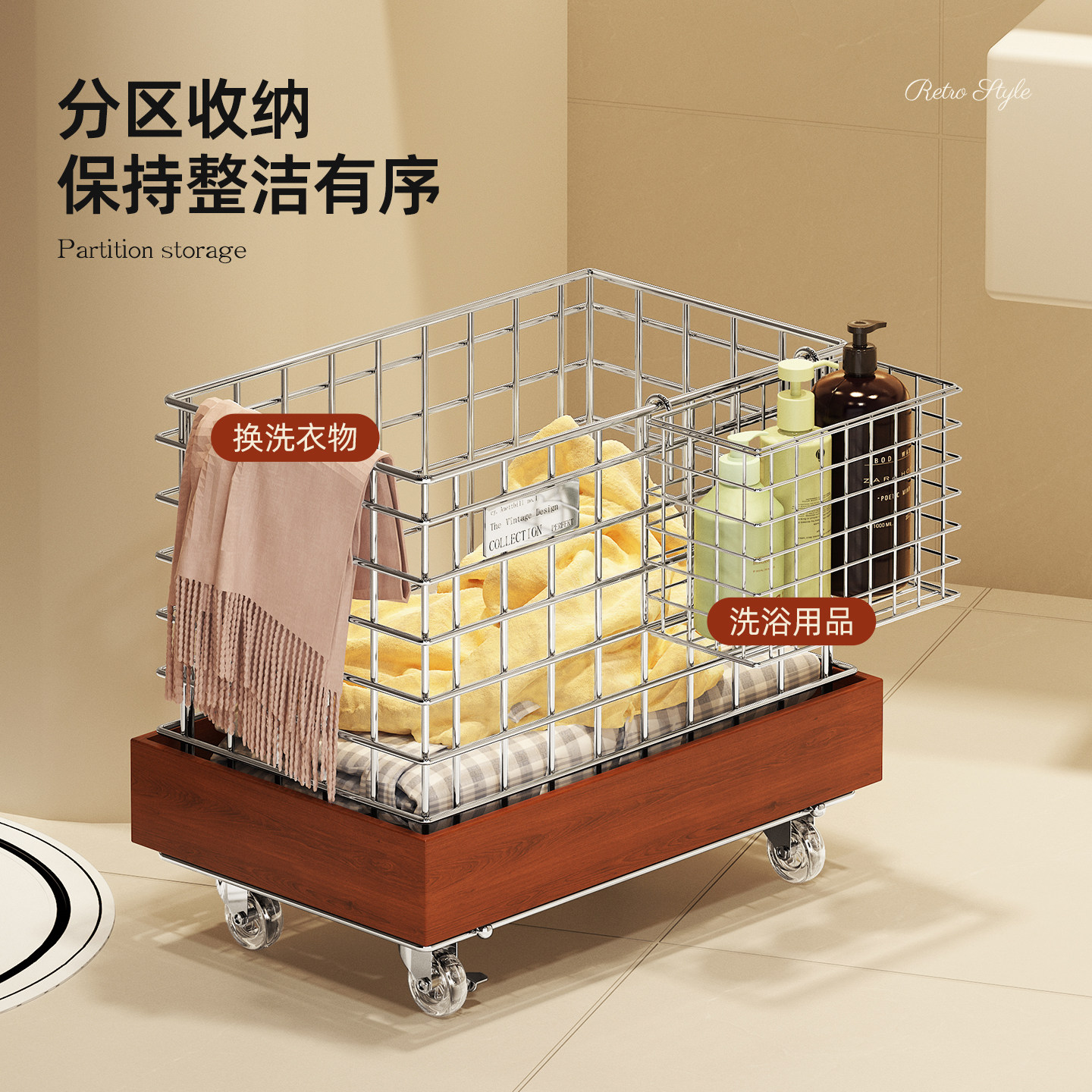 家用柜下脏衣篮中古风衣物收纳小推车多功能卫生间洗护用品收纳筐