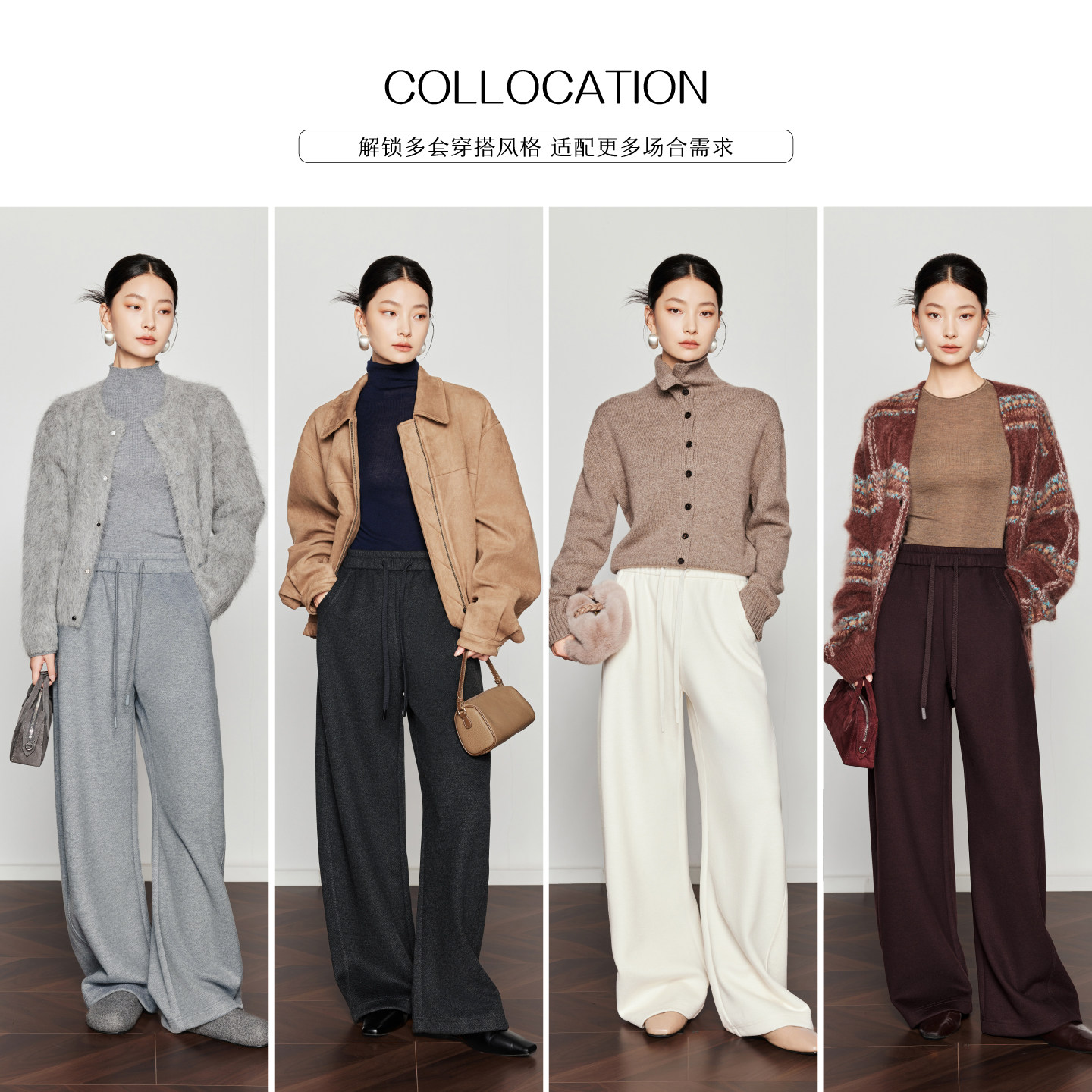 佐梦依加绒加厚休闲裤 弯刀阔腿裤