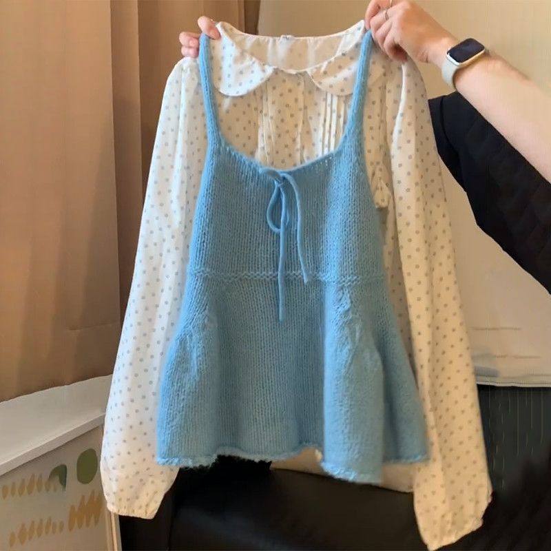 纯色针织吊带背心百搭外穿上衣 叠穿无袖 韩系甜美减龄女春季 新款
