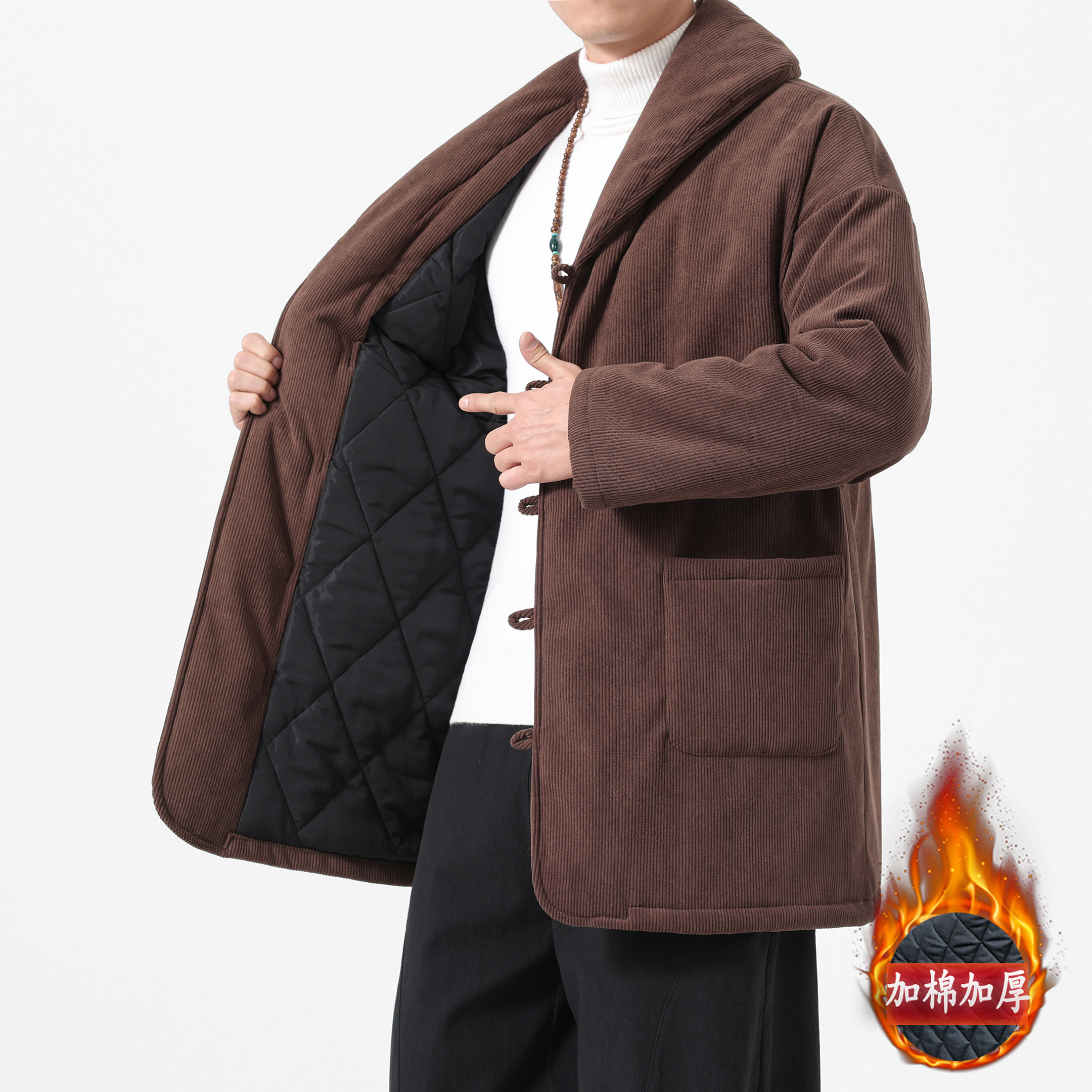 棉衣男复古风盘扣休闲宽松汉服棉袄外套 加棉加厚唐装 新中式 中长款
